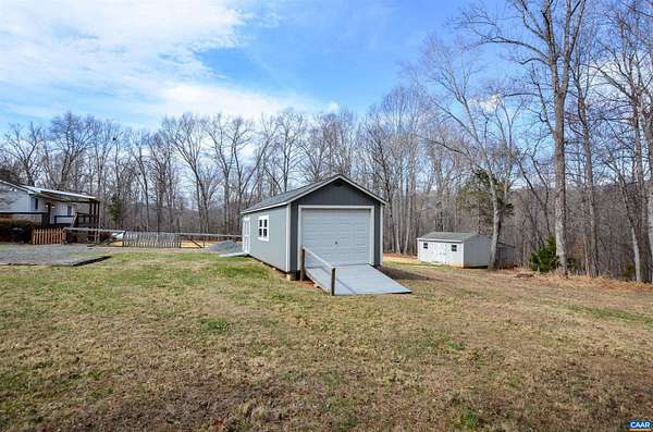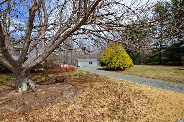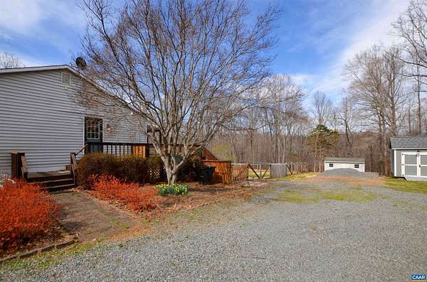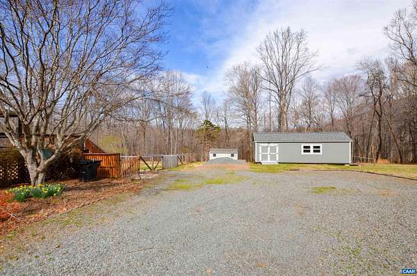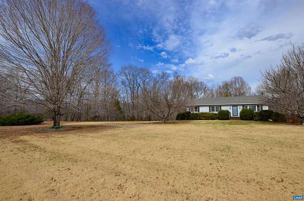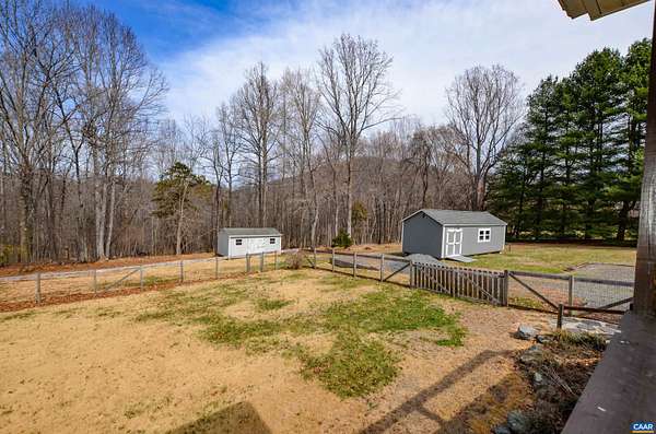 Charming ranch home with full walkout basement on 5.35 scenic acres with beautiful mountain views. Gleaming hardwood floors span the main level, adding warmth and character throughout. The formal dining room opens to an expansive deck overlooking a large, level fenced backyard—perfect for pets, play, and gardening. The kitchen features a breakfast bar and built-in pantry for convenient storage. The primary suite includes a walk-in closet and private bath with linen closet. Two additional bedrooms and a second full bath complete the main level. The full walkout basement with utility sink offers excellent potential for additional living space, workshop, or storage. Enjoy the patio area beneath the deck, the spacious front yard, and the peaceful setting. Two large outbuildings provide endless possibilities—ideal for a workshop, hobbies, or extra storage. Relax on the covered rear porch and take in the surrounding countryside. Ideally located near Charlottesville with easy access to renowned wineries, breweries, dining, shopping, medical services, and abundant outdoor recreation.