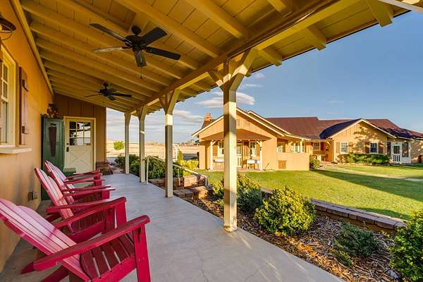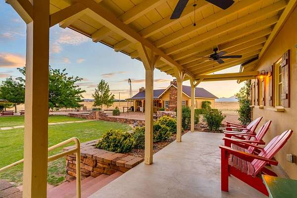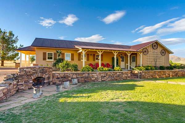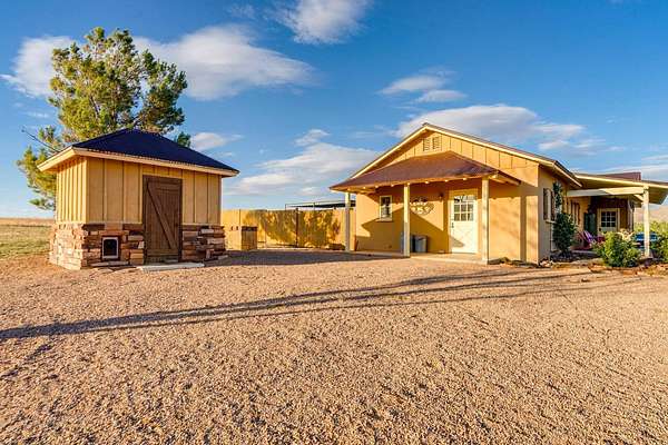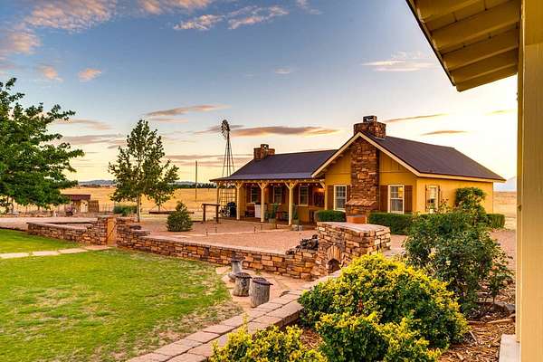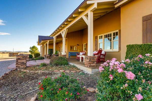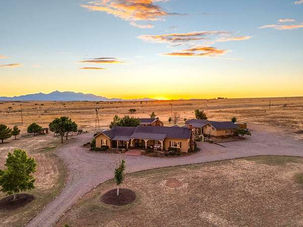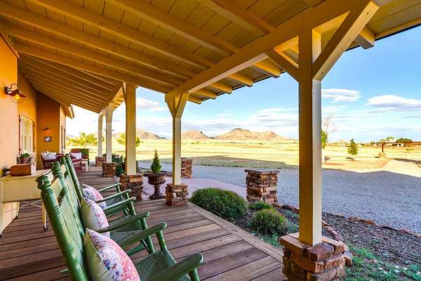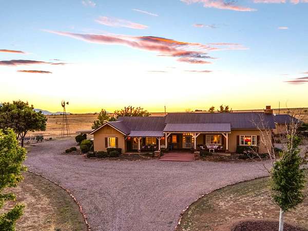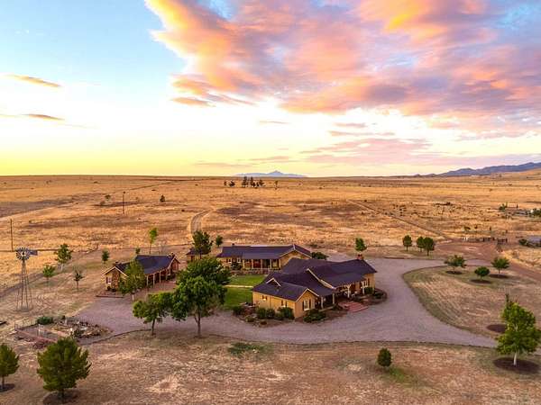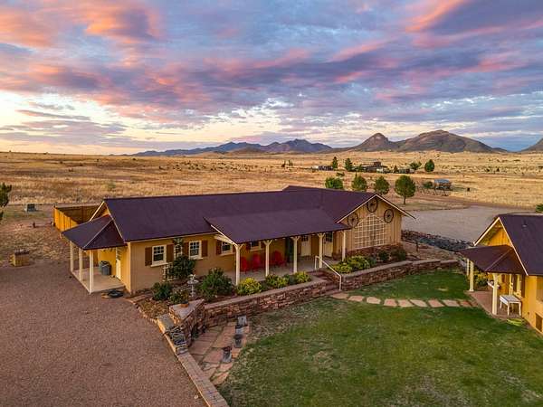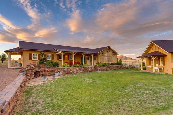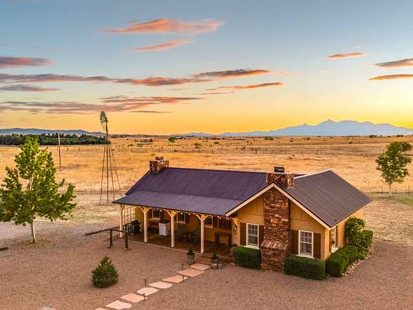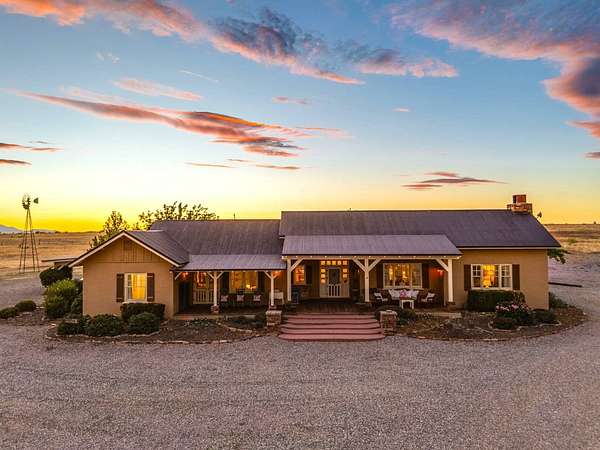 Blue Skies and Mountains at the LUCKY S RANCH! Beautiful Craftsmanship Home, Bunk House, Workshop, 2 car Garage on 10 AC Bordering AZ State Land. 360* Mountain Views and end of the road privacy on wonderful Blue Sky Lane in Elgin, Arizona. Stunning Four Masonry fireplaces crafted by local master stonemason and distinctive wood ceiling and rustic beamed trusses are some features that transform this home into your personal oasis under the Arizona Blue Sky. The main home is 3200 sq ft with 4 covered porches and a sleeping screened porch to enjoy the cool summer nights. The home features a well-designed layout that includes a comfortable family room with an authentic Rumford fireplace, oak flooring, a formal dining area, a master suite, a guest suite, and a powder room. Farm style kitchen and breakfast nook, propane cooktop cook station, farm sink, large walk-in pantry, a craft room or office and large laundry room off kitchen, leading you right out to the back yard where you can enjoy the wonderful outdoor patios, porches, ramada and outdoor fireplace, perfect for family or formal gatherings. The Bunkhouse is 1100 sq ft of charm, and each bedroom has its own personal beautiful stone fireplace and bathroom. Enjoy the quiet covered porch and view. Bunkhouse has been used as a special space for guests and charming Airbnb. The workshop is 1200 sq ft with bathroom, laundry set up plus an attached 2 Car garage. The structures are built to last with 12" thick masonry block exterior walls grouted solid and Corten metal roofing. The outbuildings include a chicken coop/ potting shed, loafing shed, well house and garden area. Back up self-sufficient generator, propane powered, 2 septic systems. Beautifully suited for a venue or horse property with the State Land for ride out and privacy, or a home to enjoy the Wine country and all Southern Arizona high desert has to offer. This place is truly a special offering! Headquarters West, Walter Lane, Designated Broker