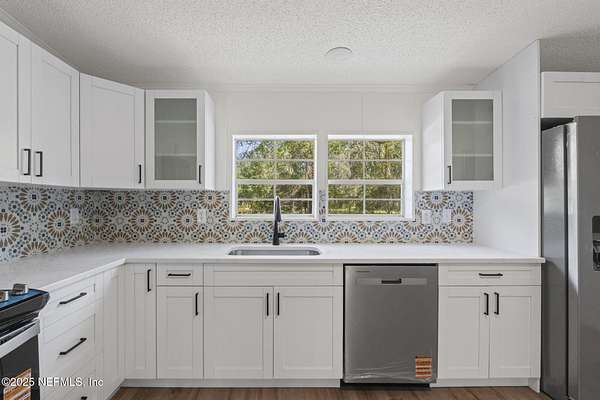 Country Living on Country Living Road! Completely updated and modern 3 bedroom, 2 bathroom, American Heritage Manufactured home, on 2.5 Acres. The large lot offers 2,000 sq ft of living space. 2x6 stud plywood flooring, all new luxury vinyl plank flooring from recent remodeling. Additionally, the electrical has been updated, a new AC unit put in place, and modern touches make this home move-in ready. Spacious layout, split bedroom features an oversized living room, updated lighting, and a brand-new kitchen with stainless steel microwave, oven, refrigerator, and dishwasher. Massive primary suite includes a walk-in closet, a luxurious free-standing tub with a separate shower, and dual sinks. Outside, enjoy country living at its finest with plenty of room for gardening, recreation, or simply relaxing in nature. Two versatile sheds provide excellent storage for tools, equipment, or hobbies. Conveniently located near Melrose with an easy commute to Gainesville, Jacksonville, or Palatka.