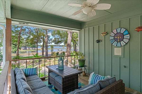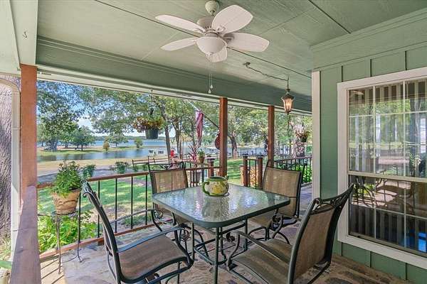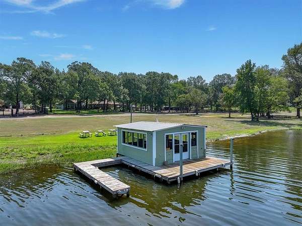 Meticulously maintained lakefront retreat on 2 acres is like none other with everything you need for enjoying lake life! Views are breathtaking at this Lake Holbrook home in nostalgic Mineola with a blend of charm, comfort and the best outdoor living. Nestled on 2 scenic acres at the end of a quiet cul-de-sac, this charming home is a private escape! Home features a private, split master floorplan with a private deck just off the master suite. Open concept kitchen, living, dining with 10 ft ceilings & stone gas FP and gorgeous large window views of the lake across the back. An additional 2nd living room space with 2nd stone gas FP and private deck that overlooks the lake just off the 2 guest bedrooms makes this a perfect VRBO, weekend getaway or your home daily retreat! Kitchen is large with breakfast bar, 2 ovens and plenty of cabinets and glass front cabinets. Outdoors the property has a showcase of beauty and function! The meticulously maintained front and backyard include mini gardens, all watered by sprinkler system on the outdoor well, several covered and uncovered outdoor seating areas, lush landscaping that complement the serene waterfront setting. A boathouse extends the lifestyle to the water set up with a fridge, grill and picnic tables that stay. One of the storage buildings are set up for a fishing room and a dedicated man-cave add function to the fishermen lifestyle and gatherings. Additional highlights are a 3-car detached carport, additional circle driveway 3 storage rooms total, separate areas for cooking out on grills. The side land parcel has open storage barns on the land for storage. Updates include, recent exterior paint, gutters, remodeled master bath with shower, Dual zoned HVAC and two HWHs. Whether enjoying sunrise coffee by the water, hosting evenings in this amazing backyard, or casting a line off your own dock or boat, this property offers a lifestyle that is as comfortable as it is breathtaking.