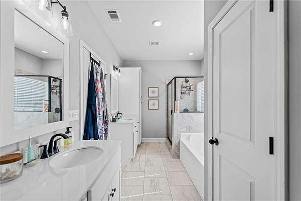 Your dream home awaits! Built in 2021 and meticulously maintained, this like-new 3-bedroom, 2.5-bath Craftsman Ranch offers the perfect blend of modern luxury and peaceful country living. Step inside to a warm and inviting stone fireplace, setting the tone for the open-concept living area and gourmet kitchen. The chefs kitchen boasts an oversized island, gleaming stainless steel appliances, upgraded light fixtures, and a spacious dining areaideal for hosting family and friends. The primary suite is a true treat featuring a tray-ceiling bedroom, spa-like ensuite bath with double vanities, a tiled stand-up shower, a soaking tub, and a huge walk-in closet with direct access to an oversized laundry room. On the other side of the home, you'll find two amply sized secondary bedrooms with a shared full bath. The covered back porch is the perfect spot for morning coffee or evening gatherings while enjoying the serenity of your expansive 2-acre property. Dont miss out on this rare findschedule your private tour today! Closing Cost Incentive available with use of Preferred Lender: Shaun Lynch at The One Brokerage.
