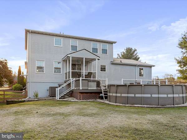 Spacious 4-bedroom, 3 full and 1 half bath home located on a beautifully landscaped 2-acre cul-de-sac lot with mature trees and a level setting. The main level features luxury vinyl plank flooring throughout and includes a bedroom with an en-suite bath, ideal for multi-generational living or guest accommodations. The primary suite offers a walk-in closet and private bath. Outdoor living is enhanced by a large front porch and a multi-level deck, with the upper level featuring a roof and ceiling fan. A large driveway provides ample guest parking. The basement includes a rec room, storage room, and walk-out access. Additional features include an above-ground pool, storage shed, and a Level 2 EV charger. Enjoy the space, privacy, and flexibility this property offers both indoors and out.