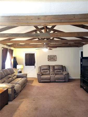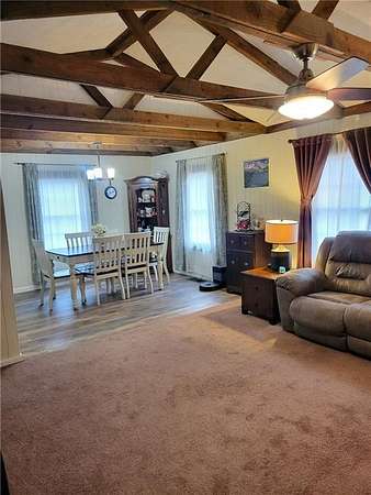 This Charming Rustic-Style home in the Fairfax community is a rare gem! Spanning approximately 2,034 sq ft, it offers 2 or 3 bedrooms and 2 bathrooms on a spacious 1.5-acre lot. It’s uniquely private while still being right in the heart of town! The open floor plan connects the living room and kitchen, with exposed beams and carpet in the living area flowing into the dining space. The kitchen, updated in 2020, features new flooring, cabinets, stainless steel appliances, and a cozy coffee bar. The large primary bedroom offers comfortable carpeting and a generous walk-in closet, while the primary bath features tile flooring and a shower. The secondary bedroom is well-sized and also features carpeting. The potential 3rd bedroom is currently being used as a home office. There is another bonus room providing the flexibility for a playroom, workout space, or hobby area. The second bath offers tub/shower combo and vinyl flooring. Other features are a sunroom where you can relax all year round and enjoy the surroundings. Outside, you'll find a single carport, patio area, and a large partially fenced yard, offering plenty of space for kids and pets to play! The roof was partially replaced approximately five years ago, adding additional peace of mind. This unique property combines rustic character, modern updates, and a spacious lot—all in a convenient in-town location. Call today to schedule your tour!