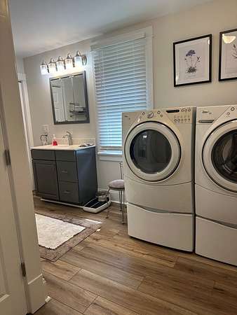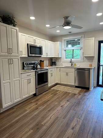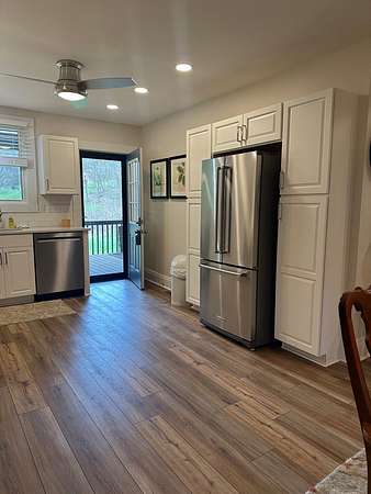 Beautifully renovated 2 bedroom, 1 full bath home with laundry located on first floor. Modern updates and peaceful living with this ranch home! Every inch of this home has been thoughtfully redone with an open layout. Updates include all new walls and flooring throughout, along with new furnace and AC. The brand new white kitchen features new Kitchen Aid stainless appliances. The spacious fully remodeled bathroom is designed for comfort and functionality with front loader washer and dryer. Both bedrooms offer cozy retreats with the main living area feels inviting and move in ready! Step outside to nature at its finest with a covered deck, a fenced in back yard nestled on a 1.7 private lot!