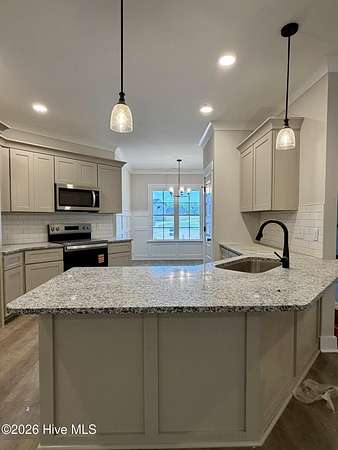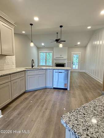 DON'T MISS $10,000 BUYER INCENTIVES! Welcome to your new home in Bartlett Farm, conveniently located in the CBA school district and just moments from SJAFB! This captivating single-story ranch offers a thoughtfully designed split floor plan featuring three spacious bedrooms and two full baths. Step inside to an open, functional, stylish layout with a large living room and dedicated dining space perfect for gatherings. The spacious living room features a cozy gas log fireplace with a craftsman-style mantle and detailed surround, creating a warm focal point for gatherings. The kitchen is a showstopper, boasting exquisite granite countertops complete with seating, a pantry, soft-close cabinets and drawers, and top-of-the-line stainless steel appliances. The inviting owner's suite features a gorgeous trey ceiling, a roomy ensuite with a garden tub, a walk-in shower, and a dual vanity. The additional two bedrooms are spacious and offer large closets. All bathrooms highlight quartz countertops and modern finishes. Additional highlights include a spacious mudroom off the garage entry, a large laundry room, a covered screened porch for outdoor enjoyment, and ample storage. The attached 3-car garage ensures both convenience and functionality. Craftsmanship is evident in the beautiful trim details, and a WiFi-enabled thermostat adds modern comfort. Don't miss your chance to own this stunning home in a sought-after community-this one won't last long!