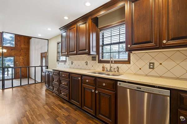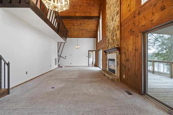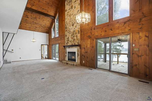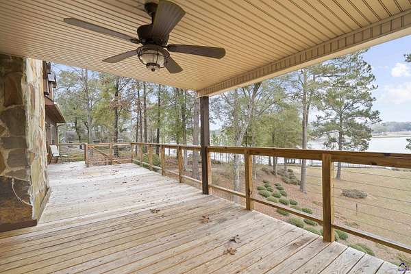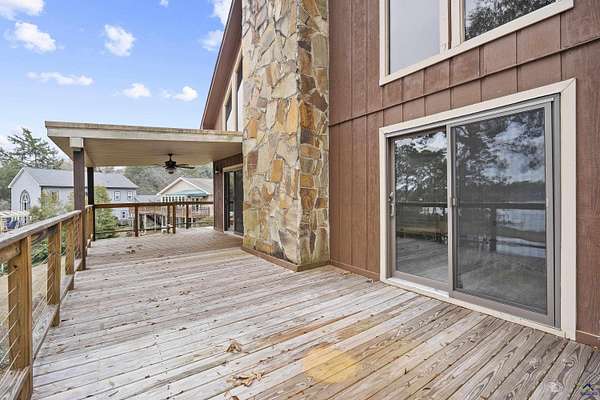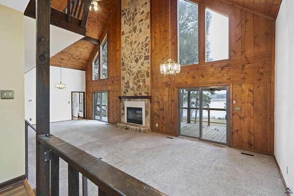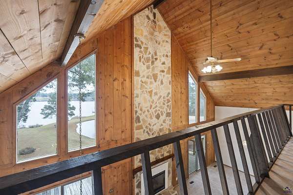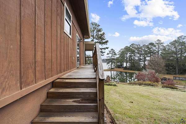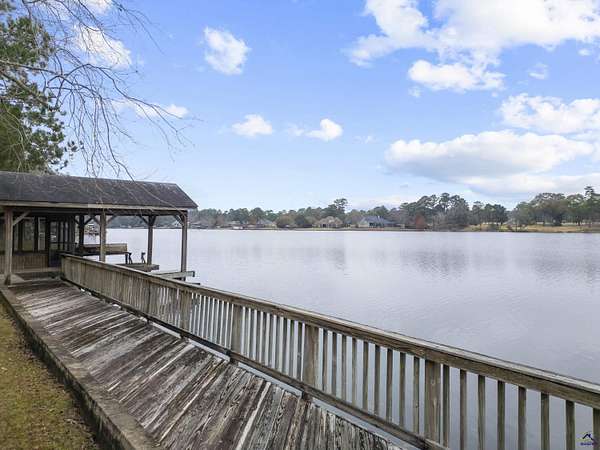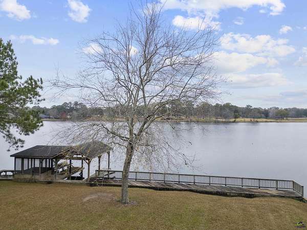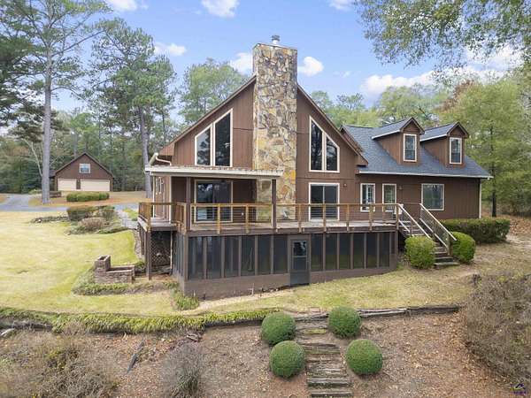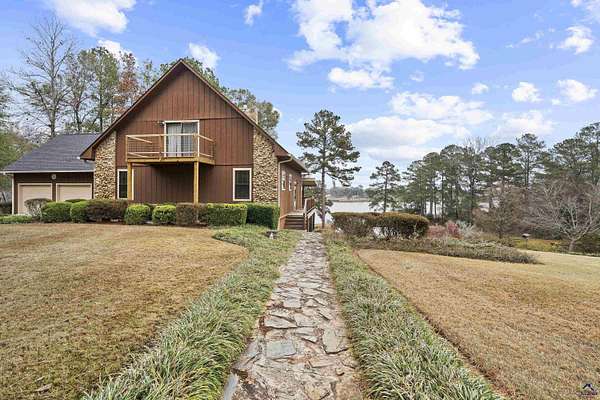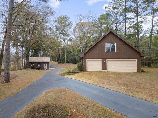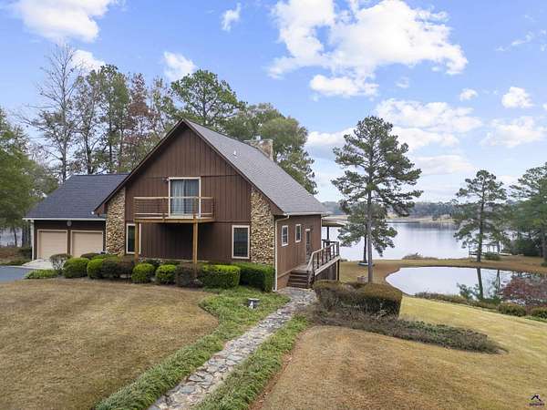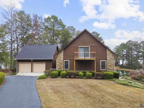 Welcome to 104 Mossland Dr! This home is a stunning waterfront retreat situated on 2.07 acres with breathtaking views of Houston Lake. Enjoy picturesque scenery across the water overlooking Houston Lake Country Club, creating a serene and truly special setting. This 4-bedroom, 4-bathroom home offers a unique and spacious layout designed to capture the surrounding beauty from multiple vantage points. The large living room features a wood-burning fireplace and expansive windows showcasing the lake views. The kitchen is equipped with updated appliances and opens seamlessly to the main living areas. A wraparound deck, partially covered and extending to the front of the home, provides exceptional outdoor living and entertaining space. The primary suite is located on the main level, offering a large walk-in closet and full bathroom. Just above the living room is a cozy loft bedroom with two closets, a full bath, and a private balcony overlooking the front yard. Another spacious loft bedroom is located above the attached 2-car garage, featuring a large walk-in closet and full bathroom. The lower level includes an additional bedroom and full bathroom, a second living room, and a laundry room, along with a screened-in back patio ideal for enjoying the peaceful lakefront setting. Additional features include a waterfront dock, a detached metal garage with remote working garage door, a separate building with plumbing, electricity and it's own septic tank. It is ready for customization as a shop with upstairs living space or additional lodging with two level, it has two remote working garage doors. With expansive acreage, water access, and unmatched views, this property offers endless possibilities in an exceptional lakefront location. Don't miss out on the opportunity to make this home yours! Schedule your showing today!
