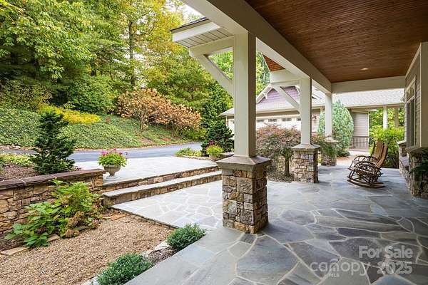 Luxury Mountain Architectural Masterpiece with Unmatched Detail. Absolutely stunning high-end home showcasing exquisite architectural detailing throughout. From the moment you arrive down the private driveway you'll be captivated by the covered slate-floored front porch, meticulous landscaping and stone hardscape with pebble pathways winding through the property. Step inside to a great room featuring a coffered ceiling, gas fireplace and expansive sliders that frame the natural setting. The gourmet kitchen is a perfect blend of form and function offering a large island with prep sink, abundant custom cabinetry, premium appliances, gas cooktop with designer hood and every amenity for effortless entertaining. A butler's pantry with wine bar complements this amazing kitchen. The elegant tray ceiling dining room bathed in natural light from large windows overlooks the gorgeous landscaping. The primary suite is a serene retreat with a gas fireplace, two custom walk-in closets and a luxurious spa-like bath with freestanding tub, double granite vanity and stunning walk-in tiled shower with pebble floor. There is a spacious laundry room/ mudroom area. Completing the main level is a great cathedral-beamed ceiling sunroom/den, a huge screened porch with gas fireplace and expansive deck- perfect for gatherings or quiet moments surrounded by nature. The lower level offers a recreational and billiards room with bar, stone gas fireplace, large study, two guest rooms, 2 full baths, exercise room and cozy sitting area. There is also a 530 SQFT unfinished storage space. Expansive 3 car garage. Enjoy the beautiful landscaped setting while relaxing on the covered slate-floored patio overlooking the incredible koi pond and waterfall- a true outdoor sanctuary. With unmatched craftsmanship, magical landscaping and sophisticated design throughout, this home is more than a residence- it's a mountain masterpiece.