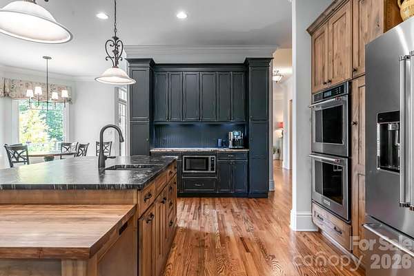 - Bar Fridge, Dishwasher, Disposal, Double Oven, Exhaust Hood, Gas Cooktop, Refrigerator, Wall Oven