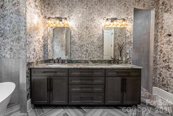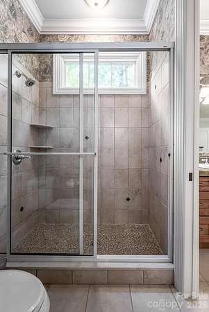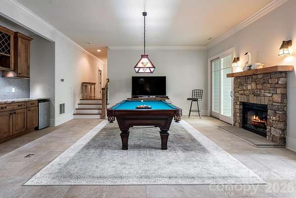 Luxury Mountain Architectural Masterpiece with Unmatched Detail. Absolutely stunning high-end home showcasing exquisite architectural detailing throughout. From the moment you arrive down the private driveway you'll be captivated by the covered slate-floored front porch, meticulous landscaping and stone hardscape with pebble pathways winding through the property. Step inside to a great room featuring a coffered ceiling, gas fireplace and expansive sliders that frame the natural setting. The gourmet kitchen is a perfect blend of form and function offering a large island with prep sink, abundant custom cabinetry, premium appliances, gas cooktop with designer hood and every amenity for effortless entertaining. A butler's pantry with wine bar complements this amazing kitchen. The elegant tray ceiling dining room bathed in natural light from large windows overlooks the gorgeous landscaping. The primary suite is a serene retreat with a gas fireplace, two custom walk-in closets and a luxurious spa-like bath with freestanding tub, double granite vanity and stunning walk-in tiled shower with pebble floor. There is a spacious laundry room/ mudroom area. Completing the main level is a great cathedral-beamed ceiling sunroom/den, a huge screened porch with gas fireplace and expansive deck- perfect for gatherings or quiet moments surrounded by nature. The lower level offers a recreational and billiards room with bar, stone gas fireplace, large study, two guest rooms, 2 full baths, exercise room and cozy sitting area. There is also a 530 SQFT unfinished storage space. Expansive 3 car garage. Enjoy the beautiful landscaped setting while relaxing on the covered slate-floored patio overlooking the incredible koi pond and waterfall- a true outdoor sanctuary. With unmatched craftsmanship, magical landscaping and sophisticated design throughout, this home is more than a residence- it's a mountain masterpiece.