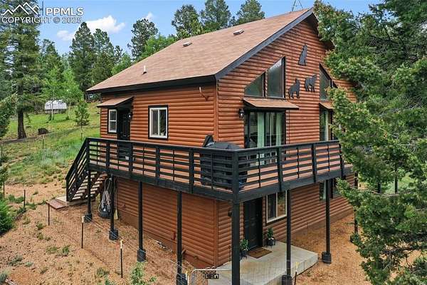 On Top of the World Views - Private Mountain Retreat on 1.65 Acres Perched high with sweeping, panoramic views, this 3-bedroom, 2-bath mountain getaway offers the perfect blend of seclusion and convenience. Nestled on a beautifully treed 1.65-acre lot, this 1,536 sq ft home features an open-concept great room with a walk-out to expansive wraparound decking-ideal for soaking in the breathtaking scenery. The interior has been thoughtfully updated with new luxury vinyl flooring and a beautifully remodeled kitchen boasting granite countertops and modern finishes. The main level includes a spacious master suite and fully remodeled bath, while the walk-out lower level provides a cozy family room, two additional bedrooms, a full bath, and a generous laundry room complete with washer and dryer. Enjoy peace of mind with a good-producing well, well-maintained septic system, and a recently stained exterior (completed less than 2.5 years ago). The fenced yard offers a secure space for pets or play. RV parking with electric around to the left of the property. Located just minutes from world-class fishing, under an hour to the Colorado Springs Airport, and only 90 minutes from internationally renowned ski resorts-this home is your gateway to adventure while remaining a private and peaceful sanctuary. Your mountain lifestyle starts here. Don't miss this opportunity to own your own piece of Colorado paradise!