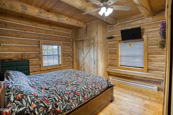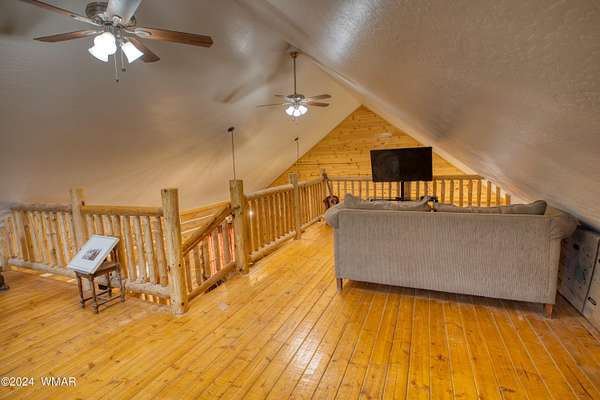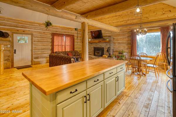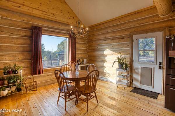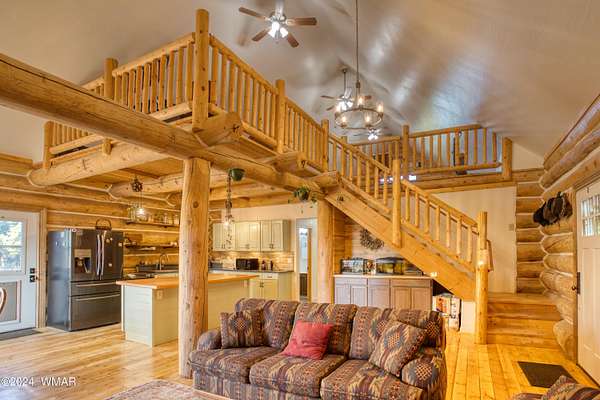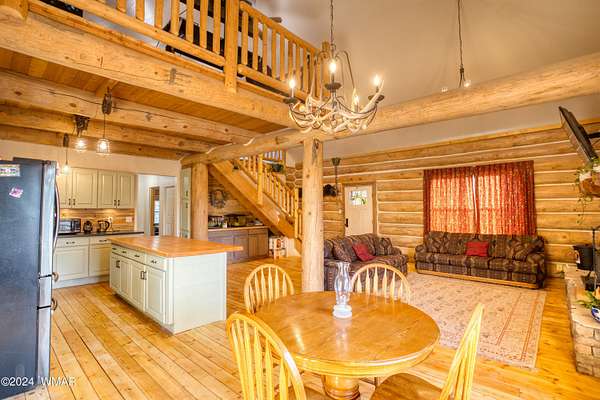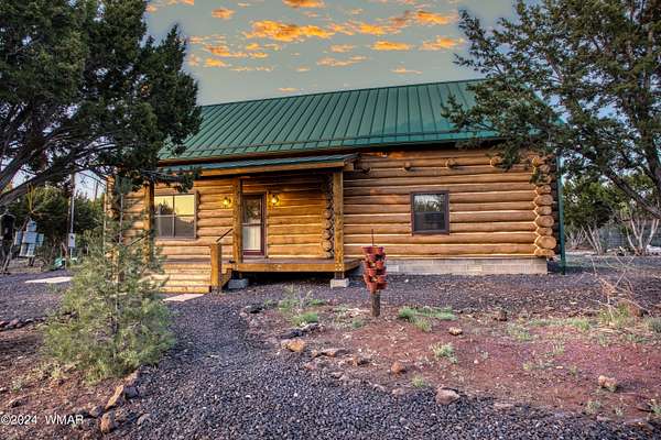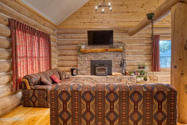 Tucked away in the White Mountain landscape, this custom-built, full-log cabin offers a perfect blend of rustic charm and modern updates on an expansive 8.62-acre lot. Featuring 2 spacious bedrooms, 2 bathrooms, and a grand loft, this home provides ample space for relaxation and enjoyment. Step outside to enjoy the covered porch and open deck, perfect for soaking in the natural beauty that surrounds you. The property is heavily treed, creating a private, tranquil setting. Inside, admire the beautiful hardwood floors and exposed logs that highlight the cabin's craftsmanship. The charming, updated kitchen is equipped with modern amenities, perfect for any culinary enthusiast. The exterior of the cabin has been recently refreshed, and the floors have been carefully refinished by hand, ensuring this home is move-in ready. Animal lovers will appreciate the fact that the property is already set up for your furry friends. Come experience comfort in this White Mountain retreat.