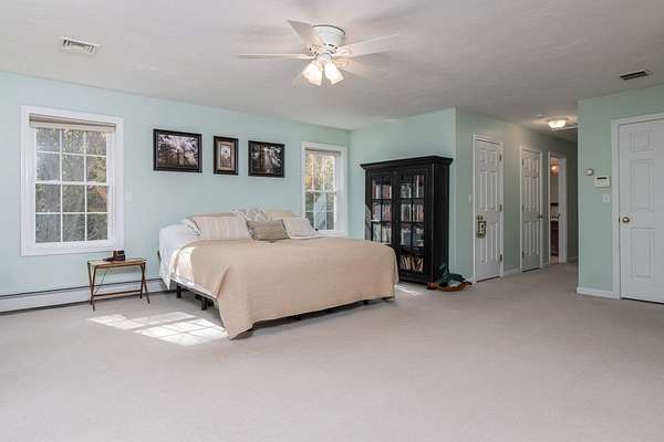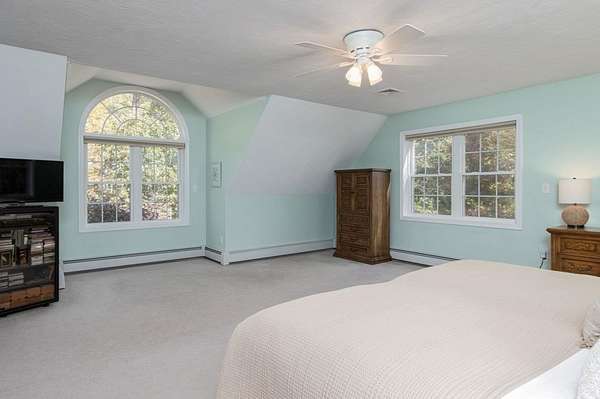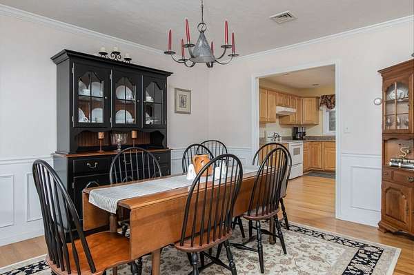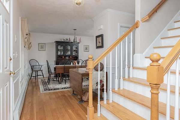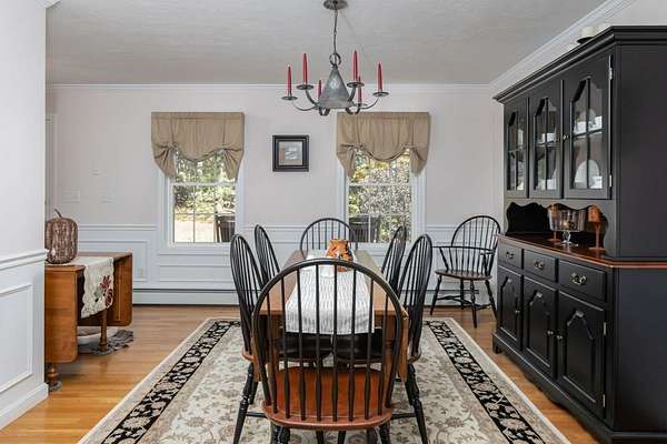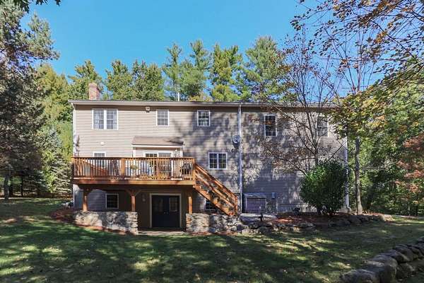 Experience quintessential New England living in this classic Cape, nestled on a peaceful wooded lot. Enveloped in a brilliant array of Autumn foliage, this home offers the charm and warmth of a well-designed home. A wrap-around farmer's porch welcomes you to an open foyer where gleaming oak hardwood floors guide you through the spacious layout. The eat-in country kitchen features extensive maple cabinetry, beautiful granite countertops and plenty of space for everyday family meals. For special occasions, the elegant dining room impresses with its classic details, accented with crown molding and shadow paneling. The inviting living room features sliders that open directly to the wrap-around porch. Head upstairs, the spacious primary suite and tile bath offers a relaxing jetted tub & shower. Two additional bedrooms & full bath complete the second floor. Additional living space in the lower level offers a family room, exercise area warmed by an efficient pellet stove. Built-in book shelves showcase your favorite books. A dedicated workshop for your DYI projects & hobbies awaits your creativity. For those seeking a healthy lifestyle, this community is a gateway to vibrant local markets offering local produce from nearby farmstands. Explore the many miles of conservation trails this town has to offer. With a strong focus on education, the high rated Hollis-Brookine school system offers the best of southern NH living. It's more than a home, this is a lifestyle opportunity!