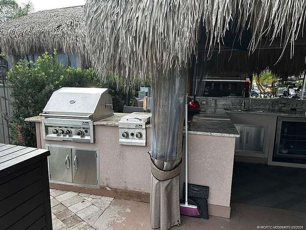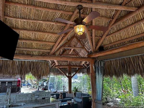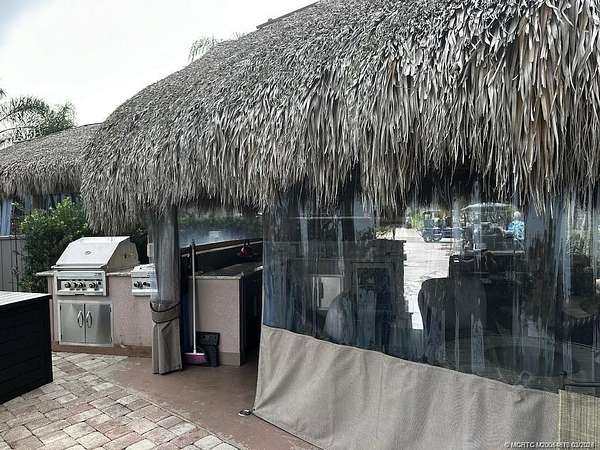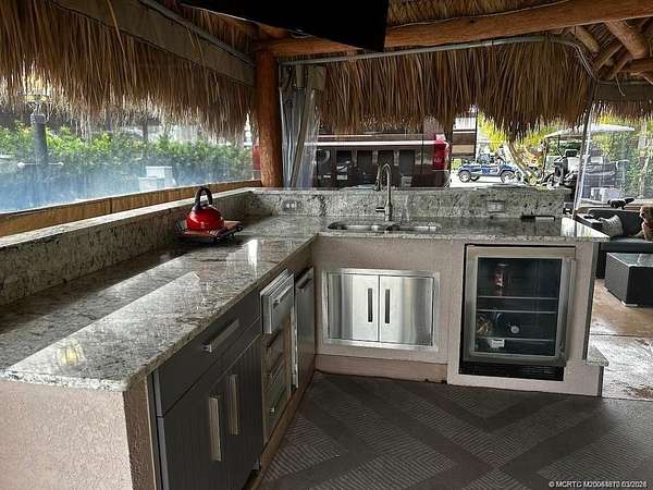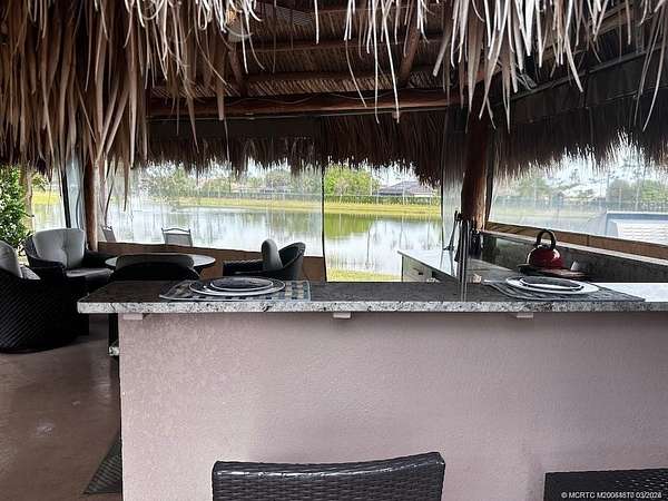 PRICE IMPROVEMENT!! Nestled within the prestigious confines of a Class A only motorcoach resort, this exquisite lot boasts an unrivaled position overlooking the expansive waters of the largest lake, adorned with a mesmerizing lighted fountain. The kitchen, boasts a granite top and beverage refrigerator and a gas grill and cooktop are strategically positioned just steps away on the outside of the tiki. Effortlessly blending luxury and functionality, this abode comes complete with tastefully curated furnishings, fire pit table and television, offering a turnkey solution for your desire for luxurious outdoor living. If you enjoy bird watching, fishing and just relaxing, this lot has it all!