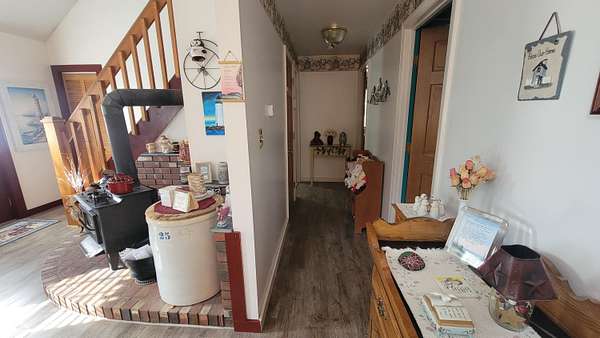 Est $1,376/moTucked away in a private, peaceful setting just one minute from downtown Machias and its amenities, including access to the Sunrise Trail, this home offers the best of both convenience and quiet living. The main level features easy one-floor living with two bedrooms and a full bathroom, while an additional bedroom and storage space are located upstairs. The basement provides ample unfinished space ideal for storage, hobbies, or workshop use. Enjoy the surrounding natural beauty from the screened-in porch overlooking tranquil forest views. Additional features include a wood stove in the living room for added warmth and character, a spring-fed dug well, and a storage shed for your outdoor needs.