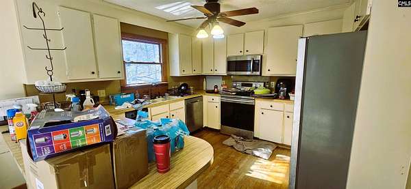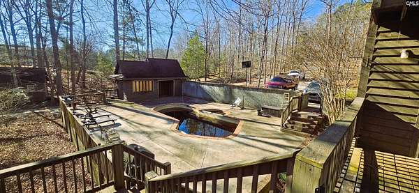 A Rare High-End Fixer-Upper Opportunity on 5.69 Acres of Privacy and Potential Discover an exceptional chance to transform this private, spacious estate into a luxury retreat. Set on 5.69 beautifully balanced acres--partially cleared for practical living and heavily wooded for natural serenity--this property offers the ideal canvas for a high-end renovation or custom reimagining.A long setback from a quiet road leads to a circular driveway, parking pad, and carport. The side-yard pool area, complete with pool house and generous entertaining space, is ready to be elevated into a true outdoor oasis. Additional structures include a custom pull-through motorcycle garage/workshop, a 40x40 workshop with its own electric meter, a storage shed, a two-story "she shed," and an outbuilding perfect for toy or equipment storage.Nature lovers will appreciate the approximate half-mile hiking trail encircling the property, the cleared and fenced areas, and the expansive backyard. Recent upgrades--such as a new well pump, pressure tank, and water filtration system--provide a solid foundation for future improvements.Inside, the home showcases unique custom craftsmanship, including rich wood trim and a striking staircase. The layout offers flexibility: enjoy the main-floor primary bedroom or convert the lower-level recreation/guest/bath area into a private suite. Two spacious upstairs bedrooms each feature a private balcony overlooking the grounds. Large windows throughout the home were intentionally placed to maximize natural views.Fresh paint, new stainless steel appliances, and new carpet complement the existing hardwood floors and woodwork, giving you a head start on updates. The impressive stone fireplace in the great room serves as a beautiful focal point--perfect for ambiance and seasonal decor. A new roof was installed in 2018.This property is ideal for buyers seeking a luxury renovation project with acreage, privacy, and endless potential. With its rare combination of land, structures, and custom features, it's ready to be transformed into a truly remarkable estate. Disclaimer: CMLS has not reviewed and, therefore, does not endorse vendors who may appear in listings.