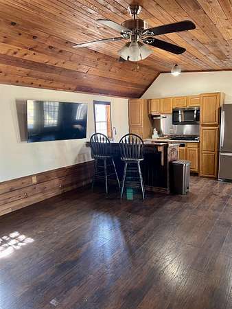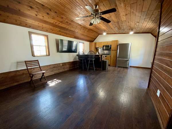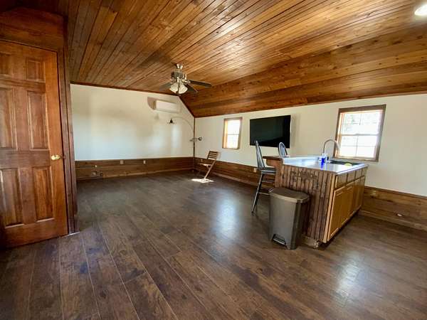 This UNRESTRICTED property has it all! Beautiful hilltop view of surrounding area. Several buildings, 2 complete RV hookups, 2 septic/drain fields, city electric, private well. Cabin: A cozy secluded cabin on top of Spring Creek Hill is 16x24 w/ a full bath & 425 sq ft of living space. 8x14 porch, city electric, propane range, refrigerator and microwave. Shed:10x10 currently "laundry" room. Water, electric only 40ft from cabin. Hobby Shed: 11.5x11.5, A/C. 10 ft from cabin. Outfitted for 'electronic' hobbies, could be anything! Shipping Container: 40 foot, w/ some shelving, power & lights. Warehouse: 50x36 ft,14 ft high outer walls (center height about 18ft). Crown electric forklift. Industrial shelving along one entire 50' wall. 2-10ft high rollup doors (powered). 20amp 110 outlets every 8 feet on walls. Vent fans installed. Separate electric meter from Cabin + sheds. Various tools (desk, industrial shelves,kuboda utility vehicle, steel mill, welding machine, refrigerator, lift, television, tables). Tons of misc hardware (bolts, nuts, pipe fittings, etc).Kubota gas powered 4x4 "pickup" cart. Covered 50' RV/5th wheel parking (by warehouse) w/ 50amp electric, water, and sewage hookups. Separate 50amp RV electric and water hookup opposite side of Warehouse (also exterior).