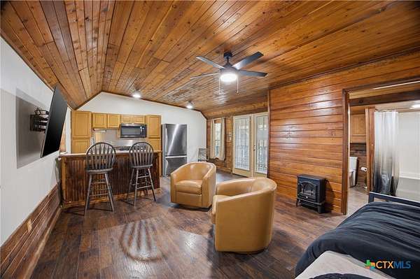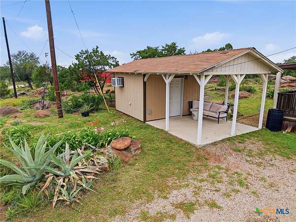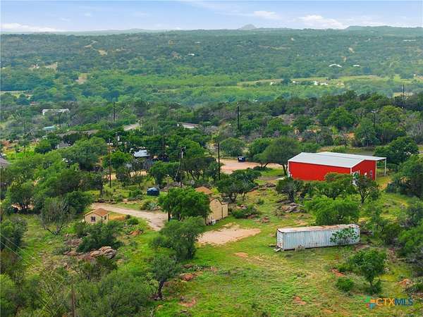 Positioned on a rare three-lot corner parcel (including 105 Yucca Dr) just minutes from Burnet off Hwy 29/281, this secluded hilltop escape offers unmatched versatility-whether you're envisioning a private retreat, income-producing property, event space, or live-work compound. This is where lifestyle meets opportunity.Perched atop Summer Creek Hill with sweeping views toward Lake Buchanan, this one-of-a-kind 2.4-acre retreat offers a rare blend of privacy, functionality, and opportunity. This is more than a home-it's a fully equipped lifestyle property designed for those who want space to live, create, and build something extraordinary. The charming 425 sq ft cabin delivers cozy, elevated living with a full bath, propane range, A/C, and a covered porch perfect for soaking in Hill Country sunsets. Just steps away, additional structures expand the possibilities-featuring a dedicated laundry shed, climate-controlled hobby workshop, and a fully powered 40-ft shipping container for storage or workspace. Where this property truly separates itself is the 50x36 industrial warehouse, equipped with powered roll-up doors, extensive electrical infrastructure, ventilation system, two parking spaces for full-sized RV, and heavy-duty equipment including a forklift and specialized tools-ideal for business owners, craftsmen, or investors looking for a turnkey operation.