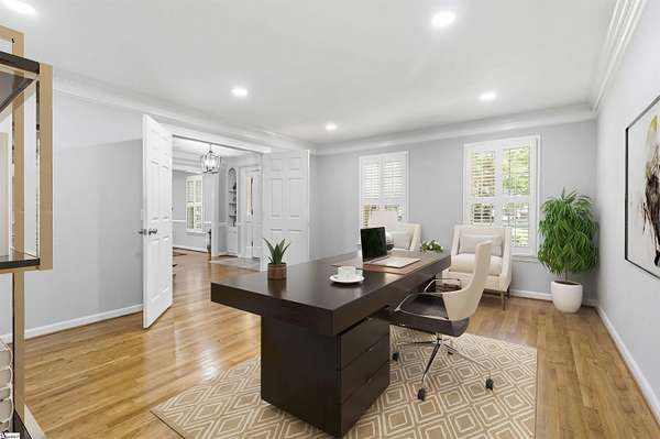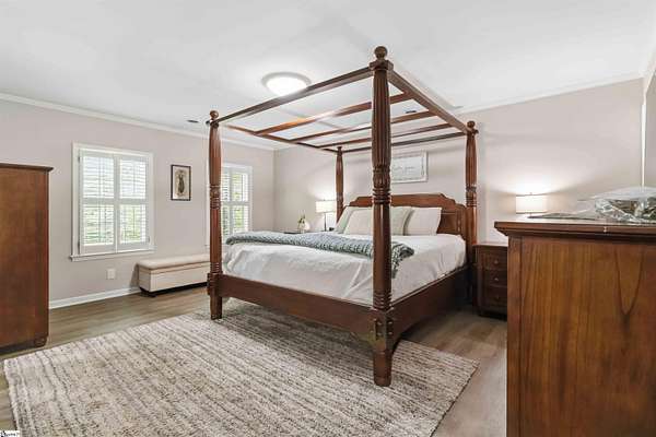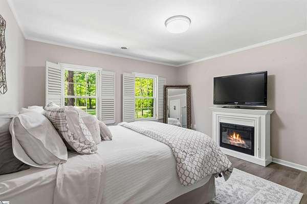 Rare opportunities like this don't come along twice — and they certainly don't come with two parcels. Welcome to 104 Shadowcreek Court, where a breathtaking 5.07 acres in the heart of Simpsonville is yours to shape, expand, and call your own. Whether you envision a private compound, a custom workshop retreat, or simply the freedom to hold a 2.33 acre parcel as a future investment, this is the land and the lifestyle that makes it all possible. Set behind a canopy of majestic mature trees, this stunning two story brick home is the kind of property that stops you in your tracks. Two stocked ponds shimmer in the afternoon light, a charming nature bridge arches over quiet water, and a fountain anchors the lush, beautifully landscaped grounds. A fenced garden invites your green thumb, and a discreetly positioned outbuilding stands ready for your workshop, studio, or fleet of vehicles. This is not just a home — it's your own private paradise, tucked away in one of Simpsonville's most sought after neighborhoods.Step through the front door and into a warm, elegantly appointed interior where oak hardwood floors and crown molding set the tone throughout. The kitchen delivers both style and substance — a center island, solid surface counters, stainless steel appliances including a gas range, and a sun drenched breakfast nook with a bay window overlooking your backyard sanctuary. The spacious great room flows naturally to an extra large covered patio and sun room, perfectly suited for evening grilling, firefly watching, or gathering with friends all summer long. Upstairs, five generous bedrooms offer room to live, work, and play — including one that shines as a rec room or game room. The primary suite is a true retreat: dual walk in closets, dual vanities, and a luxuriously tiled shower. Vaulted and coffered ceilings, a grand foyer entry, and bright bay windows add architectural elegance at every turn. Tech forward and move in ready, the home features Cat5 wiring in every room, a fully encapsulated crawlspace, a commercial grade dehumidifier, and fresh paint throughout.Minutes from the Prisma Health Family YMCA, Bridgeway Station, and Downtown Simpsonville, with easy access to I-385, I-85, and US-276 — and just 20 minutes from the energy of Downtown Greenville. Zoned for Bethel Elementary, Hillcrest Middle, and Hillcrest High (please verify with Greenville County Schools). Homes with this combination of land, location, and livability are extraordinarily rare. Two lots. One extraordinary opportunity. Don't let it pass you by.