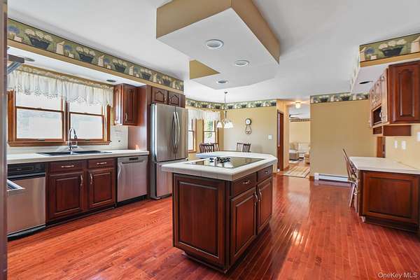 - Eat-In Kitchen, Entrance Foyer, Formal Dining, Granite Counters, His and Hers Closets, Kitchen Island, Natural Woodwork, Original Details, Primary Bathroom, Recessed Lighting, Soaking Tub, Walk Through Kitchen, Walk-In Closet(s), Washer/Dryer Hookup