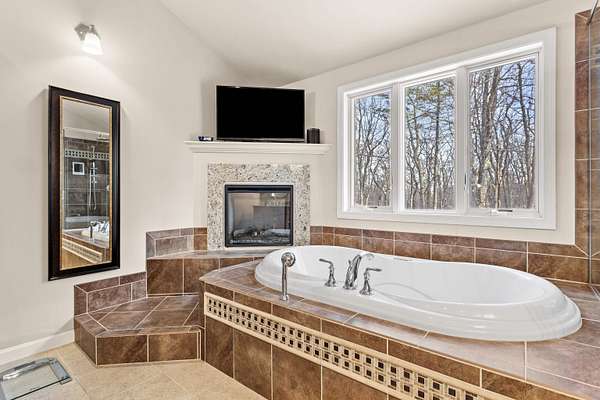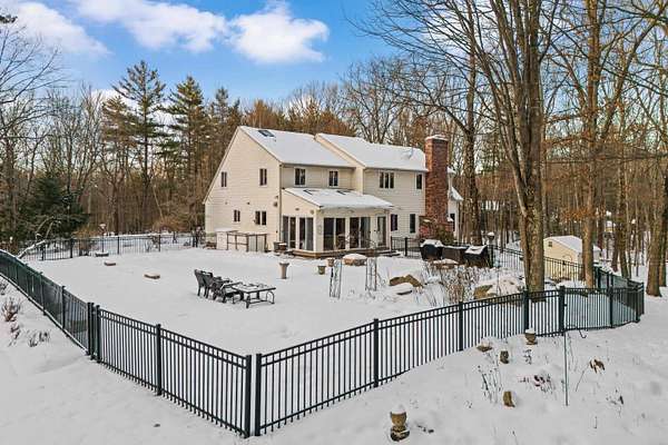 Spectacular contemporary cape on over 3 wooded acres just a few minutes walk to Tower Hill Pond trail access!! Incredible entertaining space - highlighted by spectacular Custom Kitchen with Cherry Cabinetry with Thermador Range & Sub Zero Refrigerator, large island custom built ins, built in desk & hutch. Front formal living room greets you when entering the front door, dining room is enormous open to den with cozy wood stove, family room features a stone fireplace and wet bar. On the 2nd floor are 3 generous sized bedrooms the primary suite features a built in window seat with cedar lined storage below and fireplace plus an incredible walk in closet and primary bath Gorgeous tile shower, jetted tub & fireplace. More space in the lower level bonus room too!! But wait ... there's more.... heated inground pool and outdoor firepit off the 4-season porch on the main level... this is a home that everyone can enjoy!!