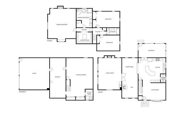 - Bathroom x 3, Bedroom x 3, Bonus Room, Den, Dining Room, Family Room, Kitchen, Laundry, Living Room, Utility Room