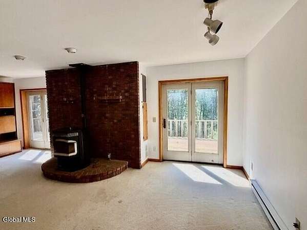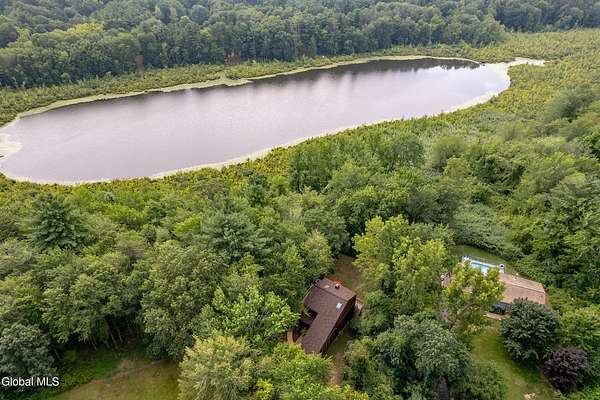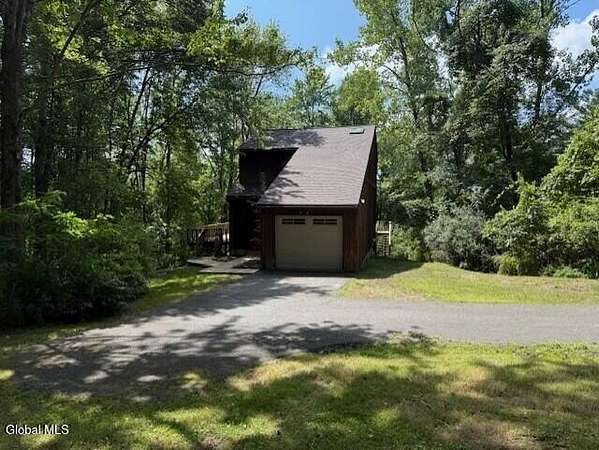 Est $2,129/moThis is a lovely home nestled on 1.72 acres of privacy. This contemporary home backs up to Vosburg Pond, if cleared you would have a tremendous view of the water, in the water you can see it much better. Sold AS-IS, needs work but the payback would be to have a spectacular home on a quiet road. There is a propane hook-up if you want a gas stove. Paved driveway, newer well pump, wrap around deck, hard Trex deck, roof new in Oct. 2024, pellet stove, entertainment piece stays, hot water heater less than 1 year old, 2nd floor windows have a lifetime warranty, new walkway. Back on market pending releases.