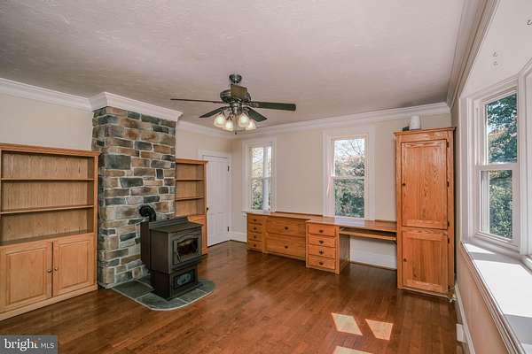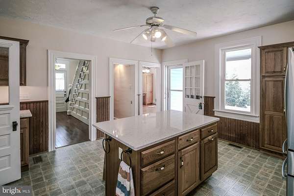 Welcome to your very own Shenandoah Valley farmhouse dream come true - a charismatic 100+ year-old home near the heart of Browntown where timeless charm, modern updates, peaceful vistas & the beauty of nature surround you literally at every turn. Built to capture stunning views from every window on 6+ glorious acres (with pond and two outbuildings), even Bob Dylan would love to work on "Maggie's Farm" (named after the song and once a popular Christmas tree farm a few decades ago). Significantly updated in recent years & spotless inside, this extraordinary property offers 4 bedrooms, 3 full plus 1 half baths, 3,400+ square feet of living space, and 4 distinct outdoor entertaining areas, including a 29-foot Trex side porch, 20-foot Trex front porch, two adjoining 22+ foot landscaped patio areas off the circular driveway and enchanting walkways surround the home. Highlights include an enormous owner's suite addition on each level, including one created for handicap-accessible mother-in-law quarters (featuring a 25x13 room with separate easy entrance adjacent to the main-level bedroom/bath suite). Both levels offer fantastic mountain views (including Hogback Mountain), and either could serve as a huge recreation room if a 4th bedroom is not needed. The upper room has a propane line for a future gas fireplace, and a propane heater was added in the mother-in-law suite. Remarkable storage space abounds inside & out (including 4 walk-in closets, a 14-foot bonus closet, cedar closet, and walk-in kitchen pantry). The dining room easily accommodates two tables, and the sellers have hosted 16 guests with ease. Flawless hardwood floors and original door hardware/antique glass offer timeless character throughout both levels. Outside, the setting is simply magical. A sycamore-lined driveway welcomes you home, while a plethora of native plantings fill the property with beauty and seasonal color. The owners have lovingly cataloged 37 tree varieties, 21 forbs species, and 15 types of bushes, not including the successful garden plants (including an established asparagus patch) that thrive here. They have heartwarming stories of monarch butterflies, cherished plantings, and joyful gatherings both inside & out. A beautiful gingko grove (with trail for walking or ATV riding) and a row of cypress trees create privacy, while a mature black walnut with a swing overlooks the pond. Enjoy fenced garden areas, 4 raised-bed gardens, approximately 2 acres fenced around the home (with a double entrance to keep pets safely enclosed when guests come & go), additional outbuildings (including a 20x18 tractor barn, a 12x10 garden shed with electricity, and an adjacent 12x4 lean-to). Other significant updates include: additional 500-ft well added to the existing well (2025); new plumbing from the wells to the house; hardwood floors on the entire main level (2010) & partial upstairs (2024); new pressure tank (2024); UV water purification system (2025); whole-home water softener (2025); hot water heater (2024); 4 new toilets & 2 new bath/showers (2024); updated plumbing in 2 full baths & the half bath (2024); quartz kitchen countertops with bar-stool seating (2025); refrigerator, GE Profile convection double oven (gas with built-in flat iron), microwave & dishwasher (2024); farmhouse sink, new faucet & reverse osmosis system (2025); marble backsplash (2026); crawl space encapsulation (2020); freezer in the meat shed off the patio; electric with 220 outlet to the meat shed & patio area; upgraded 200-amp electrical service (2001); 2 HVAC units (attic 2022 & crawl space 2018-programable thermostats); remote-operated lamp posts lining the driveway; radon remediation system (2025); thermostat-controlled pellet wood stove with stone chimney (2024) relined with stainless liner (2022); fresh paint inside & out (2023-present); whole house generator (conveys); and replacement windows. High-speed internet is available!