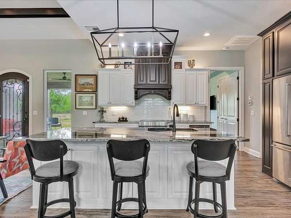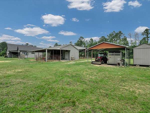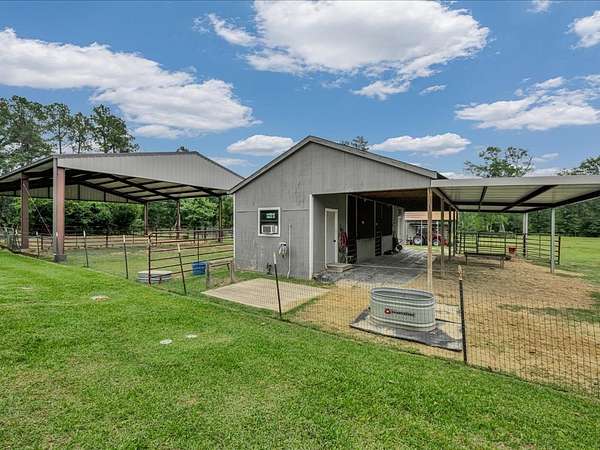 Experience the perfect blend of luxury & country living w/this stunning custom home nestled on 12.57 ac in beautiful ETX. Designed with comfort & style in mind, this home features an open floor plan, raised ceilings, a spacious 3-car garage, Generac generator, an electric gated entrance, & security system for added peace of mind. Outside you'll find a property that's truly ready for country life. Fully fenced & cross-fenced, ideal for livestock, horses, including barn, covered arena, round pen, tack room, & grain storage, everything you need to make it functional & turnkey. The property also offers generous road frontage, presenting excellent potential for future development or the option to divide & sell acreage while maintaining a private homestead setting. Enjoy the quiet, wide-open spaces while still being just minutes from Lufkin, with easy access to downtown, shopping, dining, & hospitals. Just a short drive from the Sam Rayburn Reservoir perfect for fishing & weekend getaways.