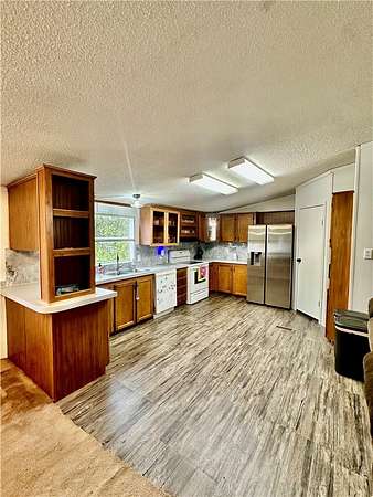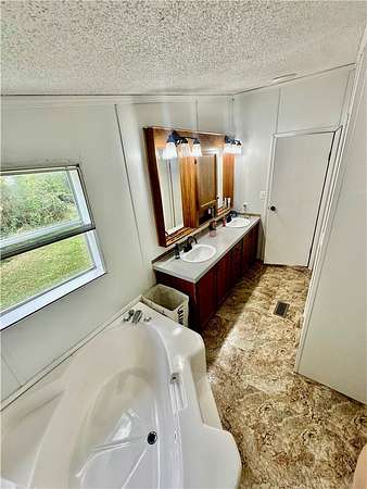Experience the best of both worlds - peaceful country living within city limits! This large mobile home sits on over 6 beautiful acres, with Long Creek running along the north side of the property. The land features a large, flat, and landscaped yard, perfect for kids, pets, or gatherings. Enjoy warm summer days relaxing in the above-ground pool, and take advantage of the storage shop and outbuilding for all your tools and hobbies.Inside, you'll find 3 bedrooms and 2 full bathrooms, including a spacious master suite with a walk-in closet, step-in shower, and soaking tub. The home has been refreshed with new paint throughout, updated light fixtures, and many improvements that make it move-in ready.With the convenience of being inside city limits but surrounded by the peaceful feel of the country, this property offers a rare blend of comfort, space