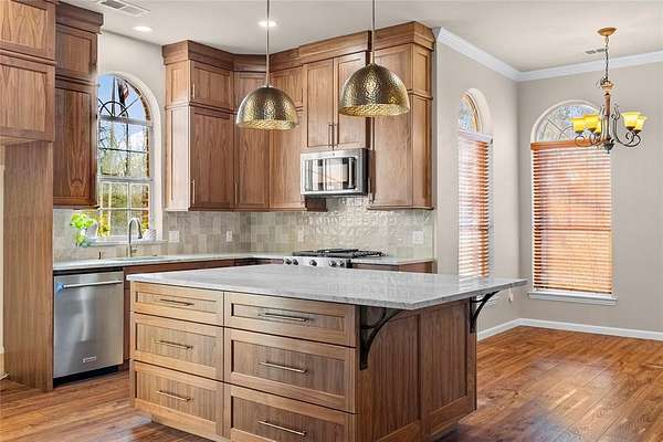- Built-In Features, Decorative Lighting, Double Vanity, Eat-In Kitchen, High Speed Internet Available, Kitchen Island, Open Floorplan, Paneling, Walk-In Closet(s)