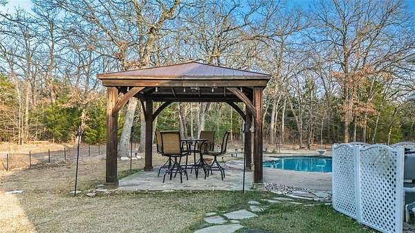 This is not just a home - it is 2 acres of FREEDOM! Welcome to 1040 CR 3314, a spacious country retreat offering privacy, functionality, and room to breathe filled with mature trees and open spaces. This 3 bedroom, could be a 4th bedrooms but currently a study, 3 bath home features 2,579 square feet with two living areas, two dining areas, and 10-foot ceilings, creating an open yet cozy feel. Inside, you'll find new flooring, built-in shelving in the living room, and a stunning dual fireplace shared between the main living space and den. The brand new completely upgraded kitchen is a SHOW STOPPER, complete with genuine walnut cabinetry, quartz countertops, a 5 burner gas stove, floor lighting, and undercabinet lighting--perfect for both everyday living and entertaining. The primary suite offers a peaceful retreat with private backyard access, a charming nook, and a walk-in closet with built-ins. You can't miss the dual fireplace between the primary suite and luxury bath. Upstairs, each bedroom includes built-in desks, along with a Jack-and-Jill bathroom and additional hallway workspace. Storage is plentiful with a floored attic and a 3 car garage, long enough for your full size vehicle. Step outside to enjoy your own private oasis featuring an in-ground chlorine pool - approximately 20,000 gallons and 9 feet deep, and covered outdoor pavillion surrounded by open space and mature trees. There will be no need to risk your life putting up holiday lights because the built-in color-changing outdoor lighting is already installed adds a fun touch for holidays and special occasions. The property also offers extra parking, previously used for batting cages. Located just minutes from L3-Harris, local parks, dining, shopping, and more, this home delivers the perfect balance of country living with convenient access to town. Selling as-is, this property is full of potential and ready for its next chapter--offering space, privacy, and features you won't find every day.