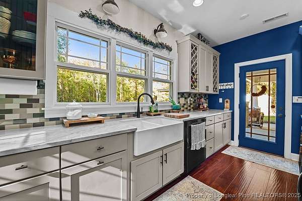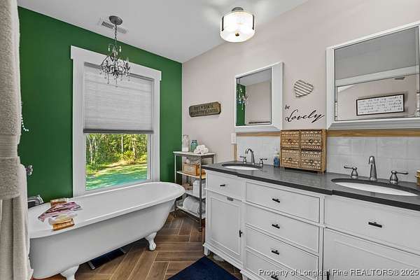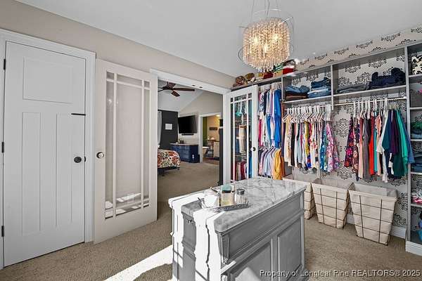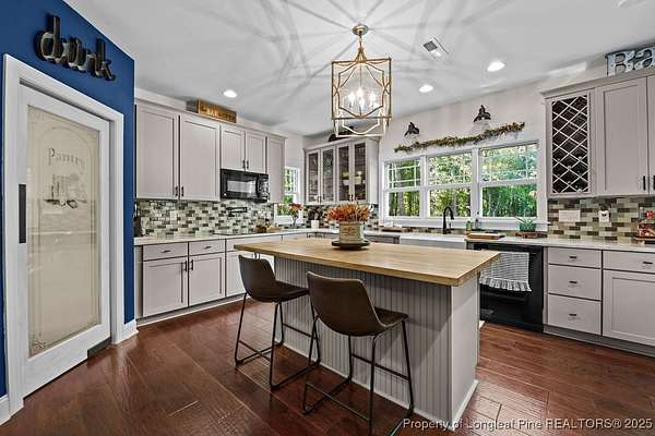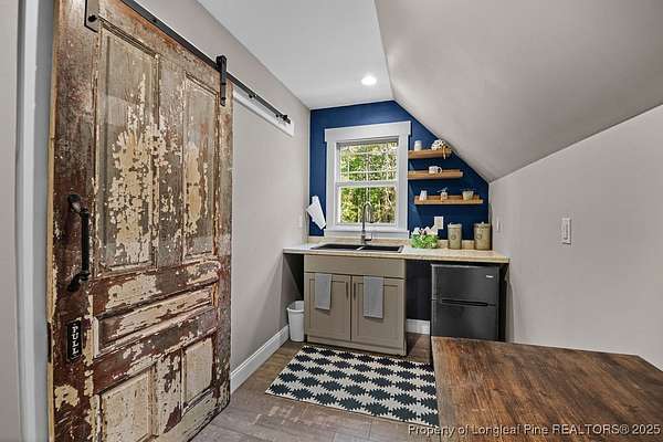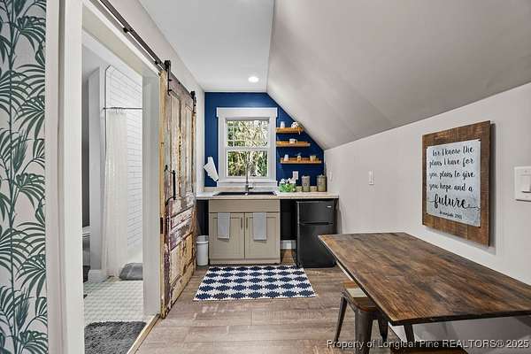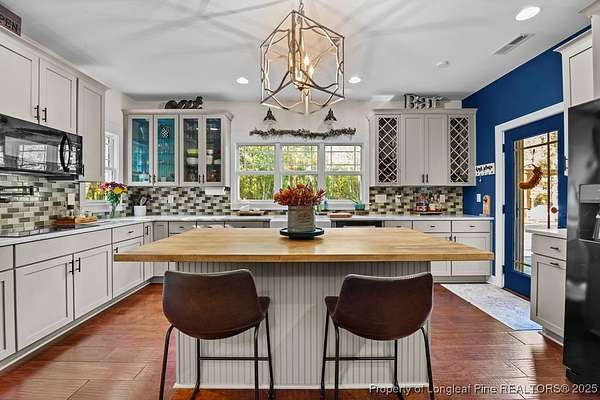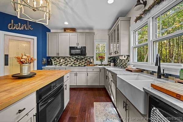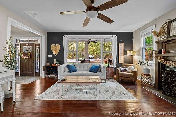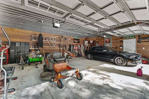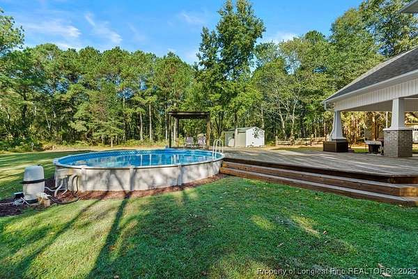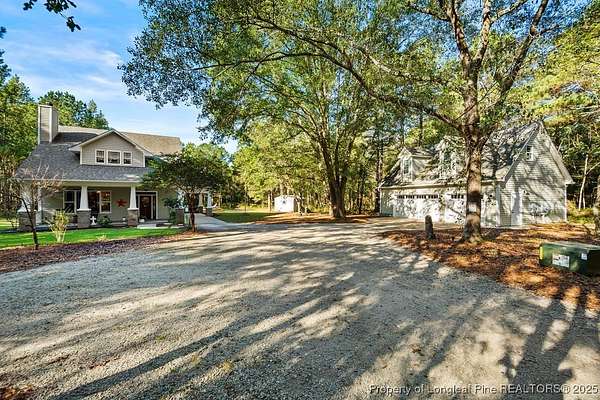 Charming custom built cottage with almost 10 acres of beautifully maintained land perfectly situated close to Fayetteville, I-95 and Fort Bragg. Very private setting with mechanical gate at entrance of long private drive that opens to this beautiful home tucked into the woods and beautifully landscaped. The Main residence features 3 Br/2.5 baths with all custom finishes and design, large deck, pergola and swimming pool. Adjacent to the home is a detached fully insulated three car garage, with a loft/apartment above that includes a full bathroom, kitchenette and living/bedroom combo. The home and loft are meticulously designed with no detail overlooked. Fine finishes like Carrara Marble in kitchen, pot filler over range, McKenzie Childs designer wall finishings, heated floors in both upstairs bathrooms, designer light fixtures and decor and many other charming details. Whole house 22kw generator, and wired shed are outside features that are included.
