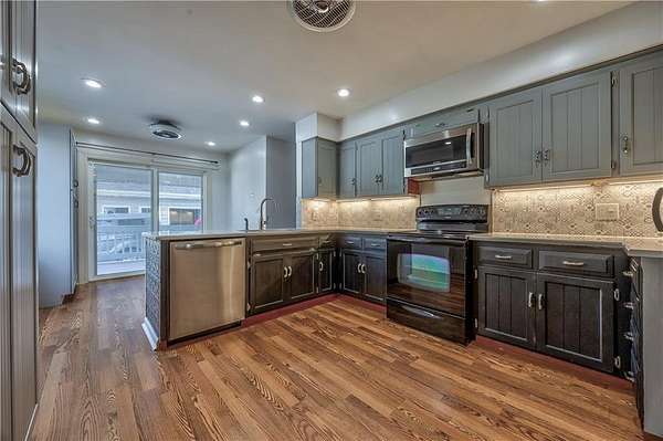 - Ceiling Fan(s), Custom Cabinets, Kitchen Island, Painted Cabinets, Vaulted Ceiling(s)