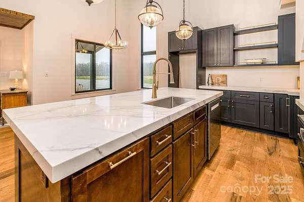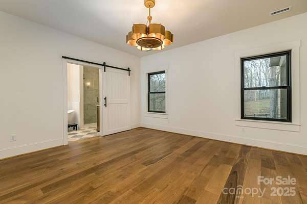 Absolutely stunning custom barndominium on nearly 4 acres, with gorgeous views of rolling pastures out the front and frontage on Third Creek at the back. Truly unique home is a must see, with site finished white oak wide plank flooring throughout, upstairs and down, and real marble tile flooring in the entry and primary bath. Dramatic marble entry foyer w/stained wood ceiling, open floorplan w/ vaulted ceiling and lots of Anderson windows. Primary suite features beautiful his-and-hers vanities, upgraded lighting, large freestanding soaking tub, spacious walk-in tiled shower; connects to a massive custom walk-in closet w/ direct access to the laundry room. Laundry room features desk space and a pull-out clothes drying rack, lots of custom built-in storage. Mud room off the garage/shop area has a drop zone area with lockers and bench. Garage/shop is 1326 s.f. fully insulated and has room for a minimum of 4 cars, possibly 6, or use the large 14' door for your RV! Hookup for RV and a hookup for a generator already in place. Upgraded spray foam insulation in home portion means lower heating & cooling bills, gorgeous quartz counters, custom arched hood vent, gas range, arched entry to butler's pantry and this theme continues to the arched fireplace surround done in Roman clay finish, as well as iron stair spindlesw w/ white oak handrails that lead to a huge loft area. Accent beam in vaulted ceiling, spacious spare BR's each w/ walk-in closets, tiled guest bath. Septic field & repair totally in front so back is open for another shop or a pool. Great water pressure - well pumps 25 GPM approx. In the popular West Rowan area just minutes from Lake Norman & Mooresville, Troutman, Statesville or Salisbury, tucked away in the countryside but not too far out.