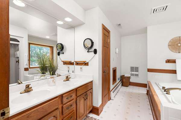- Breakfast Bar, Double Vanity, Eat In Kitchen, Entrance Foyer, Home Office, Jetted Tub, Kitchen Island, Loft, Mud Room, Multiple Primary Suites, Primary Downstairs, Recessed Lighting, Skylights, Utility Room, Vaulted Ceilings, Walk In Closets