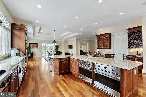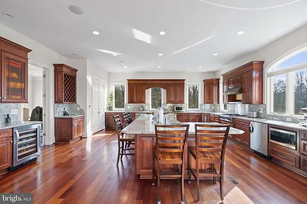 - 2 nd Kitchen, Breakfast Area, Chair Railings, Crown Moldings, Curved Staircase, Dining Area, Eat-In Kitchen, Family Room Off Kitchen, Island Kitchen, Open Floor Plan, Primary Bath(s), Upgraded Countertops, Wet/Dry Bar, Wood Floors
