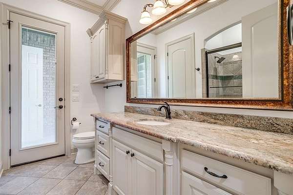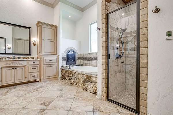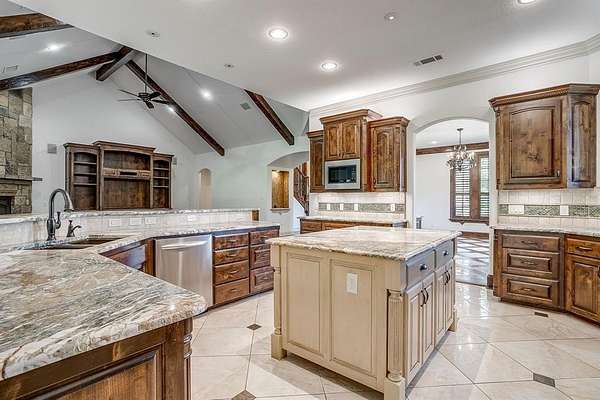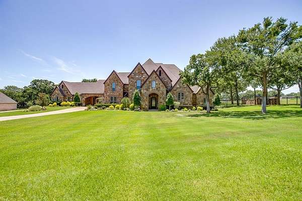Immaculate 4-Bed, 4-Bath Estate on 1.89 Acres with Game Room & Guest Quarters! Experience luxury living in this beautifully updated estate set on nearly 2 acres. The home features a grand entrance, soaring cathedral ceilings, and designer finishes throughout. The gourmet kitchen includes a large island, breakfast bar, custom cabinetry, marble flooring, double ovens, and a built-in refrigerator-freezer. The primary suite offers marble countertops, dual vanities, jetted tub, fireplace, towel warmer, and a large shower. The main level also features two additional bedrooms, two full baths, a private office, and a spacious laundry room. Upstairs includes a large game room, fourth bedroom, full bath, and space for a potential sixth bedroom and bath. With additional bedroom & full bath, the separate guest quarters offer a private retreat for visitors. Recent upgrades include new paint, carpet, lighting, and hardware. Energy-efficient and move-in ready! A Lane Garrett Custom Home.