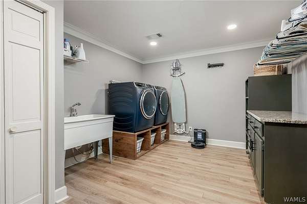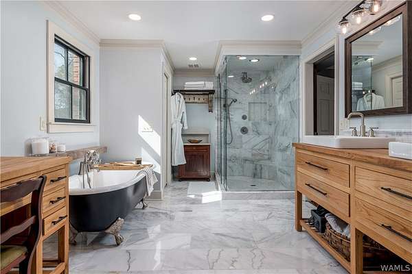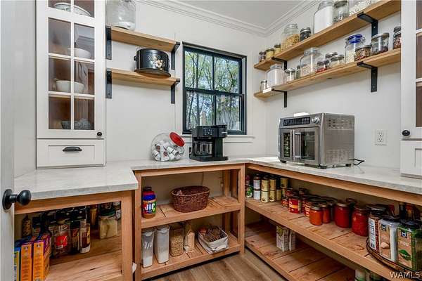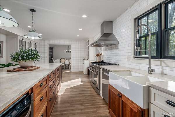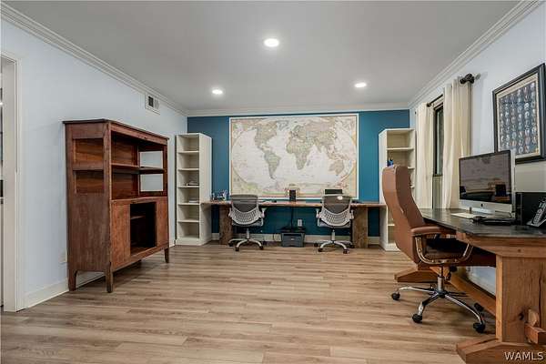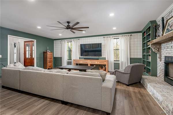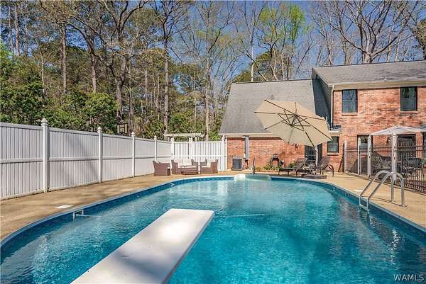 Tucked away on 3.06 wooded acres, this 4BR home with 3 full and 2 half baths offers privacy, space, and a versatile layout w/oversized rooms, 2 flex spaces, a walk-in pantry & laundry. Large, updated kitchen features stainless steel appliances, a farmhouse sink, custom cabinetry, an oversized storage island & range hood. Two primary suites, w/ the main featuring a renovated bath w/ a walk-in tile shower & a clawfoot tub. Outdoor highlights: in-ground pool with a dedicated half-bath, a chicken coop, a workshop with 2 roll-up doors, & an active well for the pool & lawn, plus beautiful woods to explore. Loganwood offers a peaceful setting w/ a shared neighborhood fishing pond while remaining conveniently located near Sokol Park, shopping, downtown Tuscaloosa, & everyday conveniences.