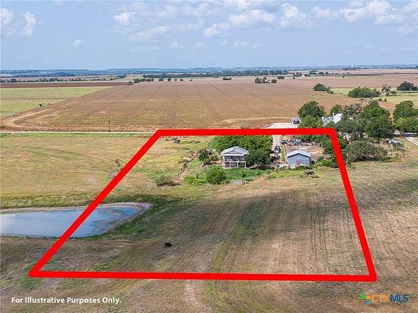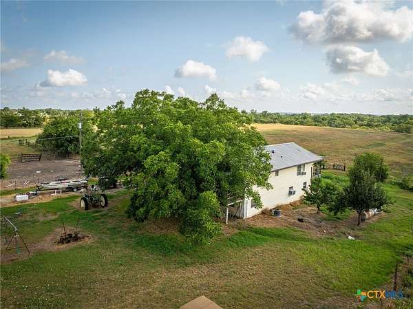 This listing is for sale together with the 21.47 acres that surrounds it on 3 sides. It is NOT for sale independently and can only be sold WITH the 21.47 acres or not sold at all. 3.73 of the 5 acres is ag exempt. The 2 bedroom, 2 bathroom house and equipment barn are likely tear downs or would need major repairs. This property also includes part of the large tank behind the house. Together, with the 21.47 acres, it makes an inviting large parcel of land that has an electrical meter, water meter and a septic already on the property. This presents an opportunity to own a nice piece of property for building your dream home, keeping animals or enjoying for recreation. It is also ideal for subdivision and development with nice road frontage on FM 621 and proximity to New Braunfels, San Marcos, the TX 130 Tollway and IH-35.