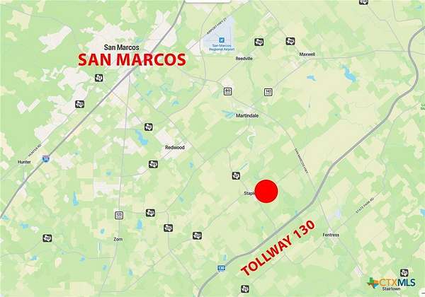 From New Braunfels, travel NE on FM 1101 towards Zorn. Turn right on HWY 123. Turn left on FM 1339 and travel to the town of Staples. Turn left on FM 621. The property will be on the left.