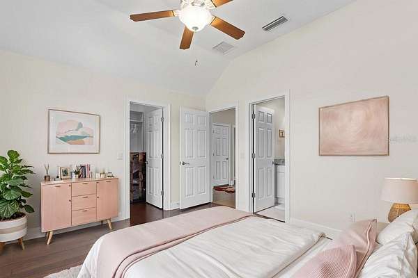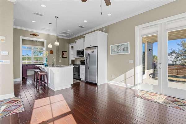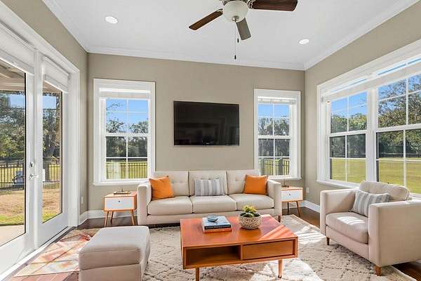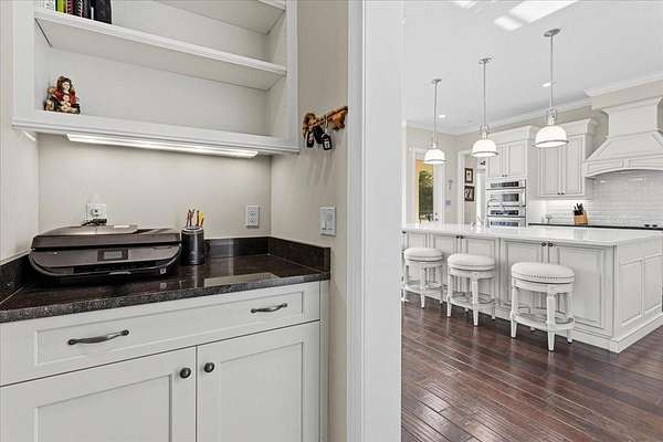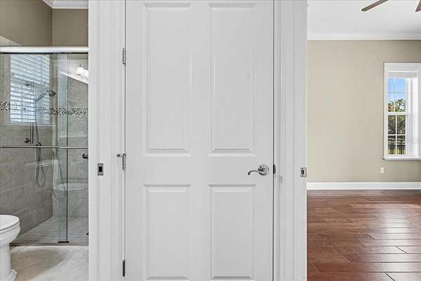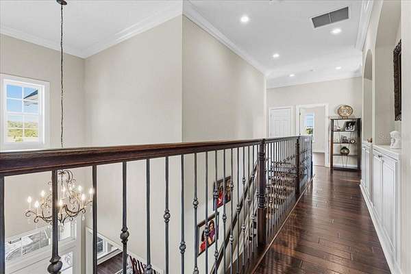- Built-In Features, Ceiling Fans(s), Chair Rail, Crown Molding, High Ceilings, Primary Bedroom Main Floor, Solid Surface Counters, Solid Wood Cabinets, Stone Counters, Thermostat, Walk-In Closet(s), Wet Bar