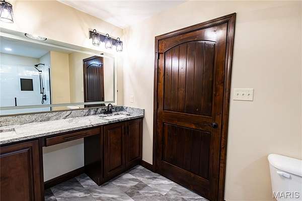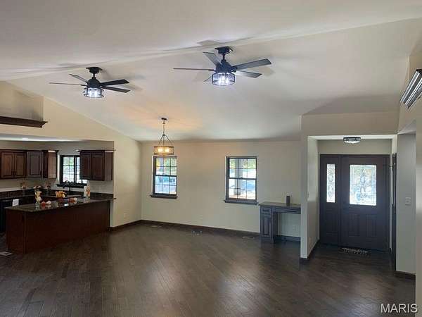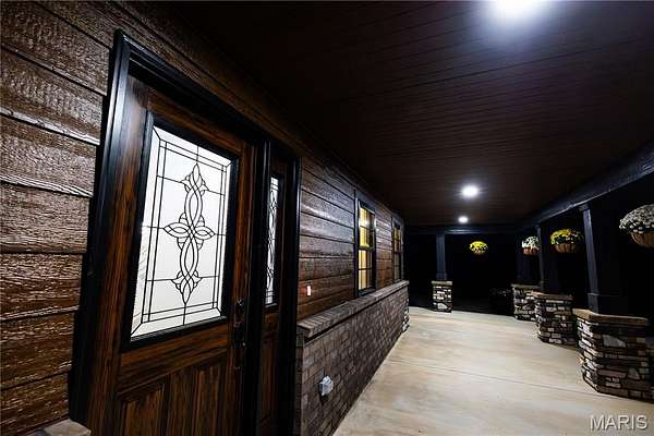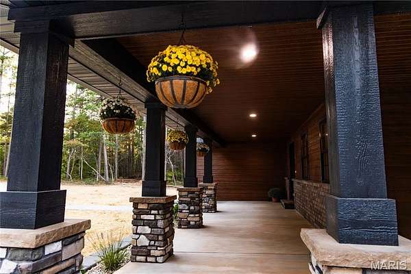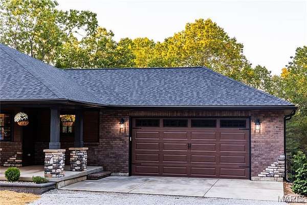 Welcome home to this stunning custom-built ranch, perfectly nestled among majestic pine and oak trees on 6.2 peaceful acres in a private subdivision. Thoughtfully designed and quality built from top to bottom, this home blends beautifully into its natural surroundings. The exterior showcases a welcoming mix of queen-sized brick, stone piers with corner waterfalls, and premium LP wood siding with a 30-year Diamond Kote finish. Beautiful landscaping and a paver walkway lead to the spacious covered front porch that sets the tone for what’s inside. Step through the beautiful wood grain front door and into an open, light-filled interior featuring gorgous wood floors, a striking stone gas fireplace, and vaulted ceilings in the great room and primary bedroom. The kitchen impresses with Category E granite countertops, custom KraftMaid cabinets featuring "lazy Susans", matching Fridgedaire dark stainless appliances and quality finishes throughout. The large Fiberon composite deck is a perfect place to enjoy nature while the sipping your favorite beverage. Convenient main-floor laundry adds everyday ease. Both bathrooms feature LED mirrors and the primary has dual vanities & accent lighting for a spa-like touch. Built for comfort and accessibility, this home includes Knotty Alder solid 36" doors throughout. The walk-out lower level offers endless possibilities with a 9’ pour, 2 egress windows and a rough-in for a full bath ready for additional bedrooms or whatever your lifestyle requires. Other quality features include Anderson windows, blown-in blanket insulation, a high-efficiency heat pump HVAC system, and Landmark Pro architectural shingles, eggshell paint finish throughout and much more. The 24' x 24' insulated garage easily accommodates most trucks and SUVs. As owners of this gorgeous home you have access to a beautiful 86-acre lake—perfect for fishing, kayaking, or simply relaxing by the water. This exceptional property is a rare find that combines craftsmanship, comfort, and the beauty of country living. Truly a must-see!
