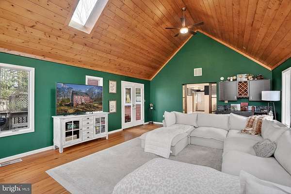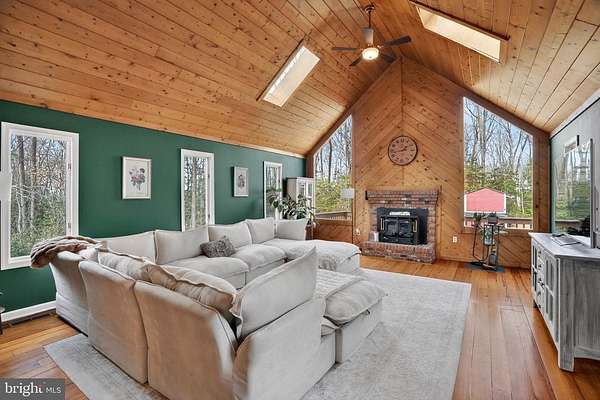 Welcome to this unique 5 bedroom, 3.5 bath Colonial home in Ferry Landing Woods Community. Over 3 acres of peaceful grounds with a natural masterpiece backyard featuring a picturesque pond with colorful koi fish. Entertain in style within the spacious dining room, ideal for hosting intimate meals or grand gatherings. The living room, a gorgeous gathering space, features soaring high ceilings with skylights and uniquely shaped windows that brighten the room and beautifully balance it with a cozy rustic feeling. At the heart of the home, you'll find a huge chef-level kitchen, perfectly designed for a large scale, seamless cooking and entertaining. It features a professional-grade gas range with an integrated hibachi griddle plate and a sleek built-in refrigerator for a truly seamless design. This home features a convenient main-level office, perfect for remote work. The upper level has 4 bedroom with the primary suite designed for ultimate relaxation with newly renovated en-suite bath, features a deep soaking tub and an updated shower, build-in dressing room, and a private deck to enjoy quiet mornings. In additional full bathroom serves the other bedrooms. The finished basement adds incredible value with a spacious game room with full bar, a dedicated workshop, and additional bedroom provides the perfect guest suite. The property has been meticulously upgraded including a new septic in 2023, new HVAC in 2024, partial new roof and siding in 2025, new update appliances of washer, dryer, and dishwasher. New well pump and water softener. New front/storm door. Freshly painted throughout, and unified two-key doorknob system. Welcome Home. Perfectly located for privacy yet easy access to DC and Baltimore via I-95 and Rt. 295.