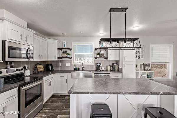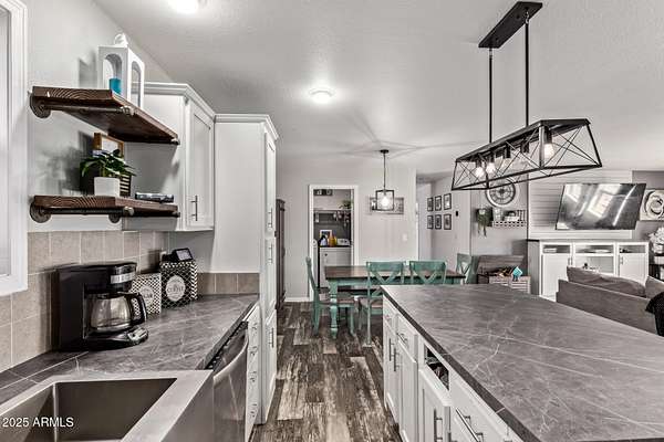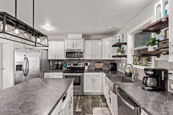 Fantastic opportunity to own a horse property on a HUGE 1.5-acre lot! The charming manufactured home offers 4 beds & 2 baths. The front deck is just the beginning. The inviting interior showcases abundant natural light, neutral palette, chic light fixtures, and wood-look floors w/carpet in bedrooms.The desirable open layout is sure to impress with a media center! The kitchen boasts SS appliances, a tile backsplash, staggered shaker cabinetry, and an island w/breakfast bar. Versatile den for an office or home gym. The main bedroom has an ensuite with dual sinks, separate tub/shower, & a walk-in closet. The expansive backyard has a fenced-in area w/storage shed, the ideal spot for gatherings. Bring your animals, RVs, trucks, cars, & toys; this gem can accommodate them all! What a RARE find!