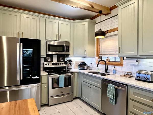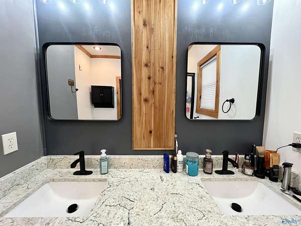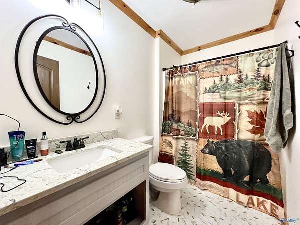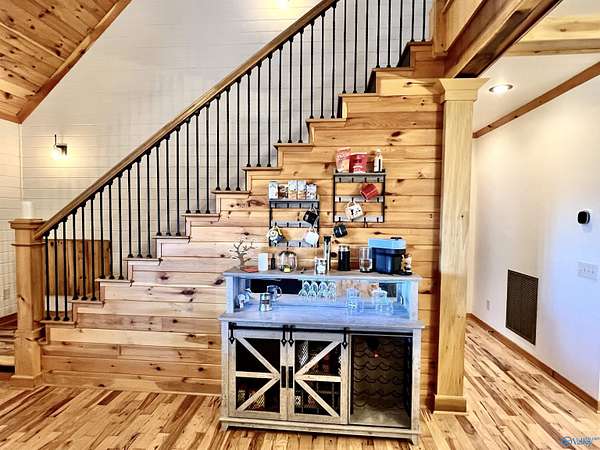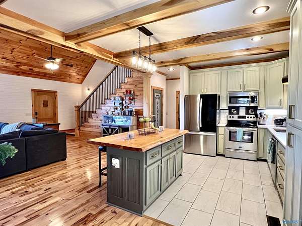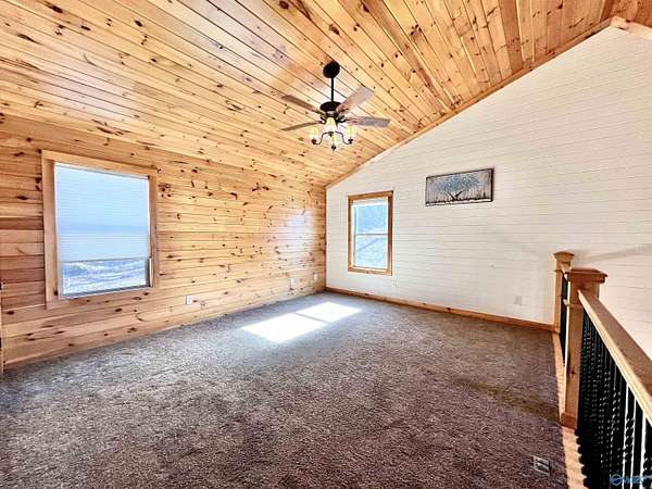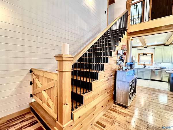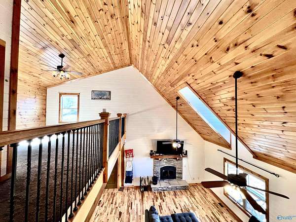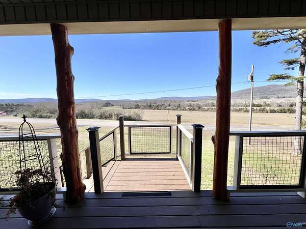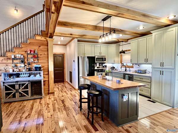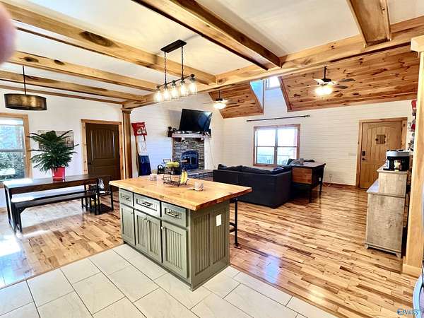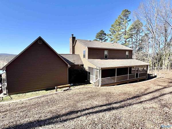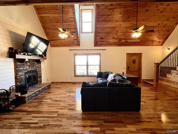 Step into this rustic custom 3-bed 2-bath home offering privacy on 6.20 acres w/beautiful mtn views. Cozy up to this living area w/white pine tongue & groove vaulted ceilings, hickory hardwoods, black walnut mantle & stone wood-burning fireplace. Kitchen boasts new stainless-appliances, quartz countertops, live edge island, eat in dining & walk-in pantry. The 2nd floor offers 2 bed/bath & loft. Enjoy the picturesque view from the front porch or relax on your 39x12 screened in back porch. Huge mudroom & master on main level! 30 minutes from Huntsville, Redstone & shopping; 2 hours from Nashville or Birmingham & only 5 minutes from Goose Pond where you can find boating, fishing & golfing!!