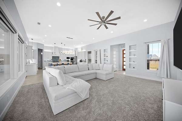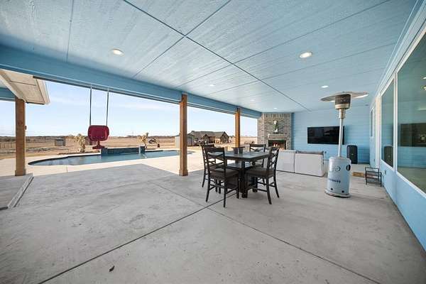 Your private backyard oasis awaits! This custom-built home, located outside city limits with NO HOA and NO deed restrictions, offers the perfect blend of comfort, functionality, and resort-style living. The open-concept floor plan features 3 very spacious bedrooms, plus an office or make it a bonus bedroom, the attic space is massive and could also be used as a loft or a man cave, 2.5 bathrooms, plus a game room complete with a granite bar top ,half bath, ice maker, and refrigerator space -- ideal for entertaining. The chef's kitchen showcases abundant cabinetry, an oversized island, stainless steel appliances, Thor propane cooktop, double ovens, and a large walk-in pantry. The primary suite is a true retreat, featuring a spa-style walk-in shower with dual body sprayers and rain head, plus a large walk-in closet with built-ins, shelving, and triple hanging rods. Step outside to your personal resort featuring a 40 x 21.5 heated gunite pool with tanning ledge, bubblers, umbrella holders, three sheer descents, and color-changing lights. Enjoy the 8 x 8 hot tub under roof with multi-seat massage options and color-changing lighting. Outdoor amenities include stamped concrete decking, outdoor shower, 13 x 30 uncovered patio, 17 x 30 covered porch with propane starter wood-burning fireplace, propane grill hookup, and hot-cold water spigot. Additional highlights: foam insulation, whole-house generator, abundant attic decking, stocked pond for fishing, landscaped acreage with large backyard grass, pasture space, sprinkler system, tank-pond, water-lake view, outbuilding and shed(s), aerobic septic system. This one-of-a-kind property offers luxury amenities with the freedom of country living. Call to Schedule your private showing TODAY!