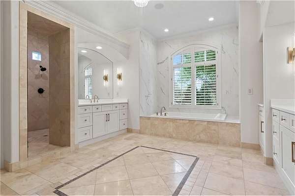 Exquisite 1.5-story home in Mission Farms that blends timeless elegance with modern updates on a beautifully landscaped lot. A dramatic staircase with custom ironwork, solid core doors, and upgraded trim showcase the craftsmanship throughout. The chef's kitchen features quartzite countertops, custom cabinetry, and top-tier appliances, opening to a cozy hearth room. Formal dining and a spacious living room--ideal for a grand piano--flow seamlessly to a covered paver patio for effortless entertaining. The main-level primary suite is a private retreat with a spa-inspired bath and custom walk-in closet. A handsome office with fireplace completes the first floor. Upstairs offers three bedrooms with fresh paint, new carpet, and updated baths, plus a versatile loft. The lower level, finished by Rick Standard, is designed for entertaining with a full bar, media room, wine cellar, workout room, and fifth bedroom. Multiple outdoor living areas, a sport court, and large backyard provide space to relax, gather, or play. This stately estate offers luxury, comfort, and thoughtful design in one of the area's most desirable neighborhoods.