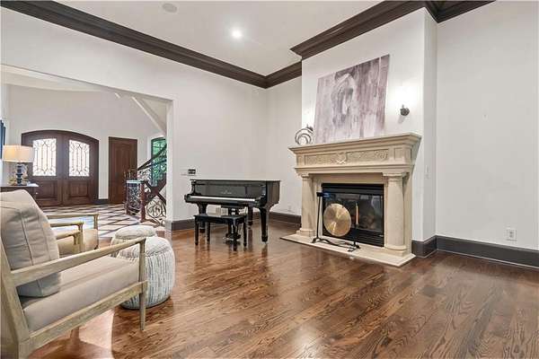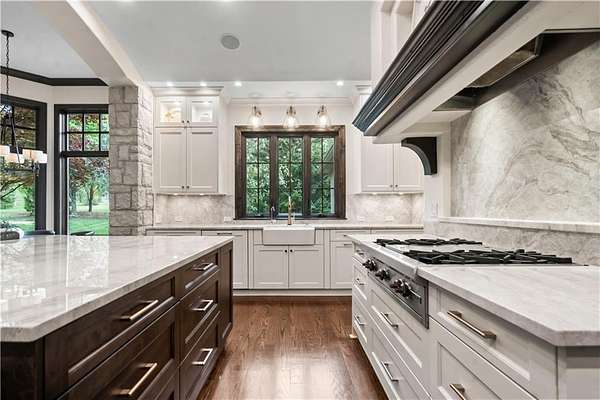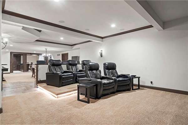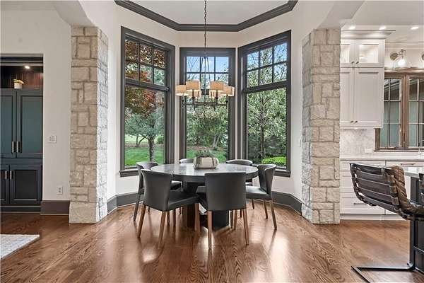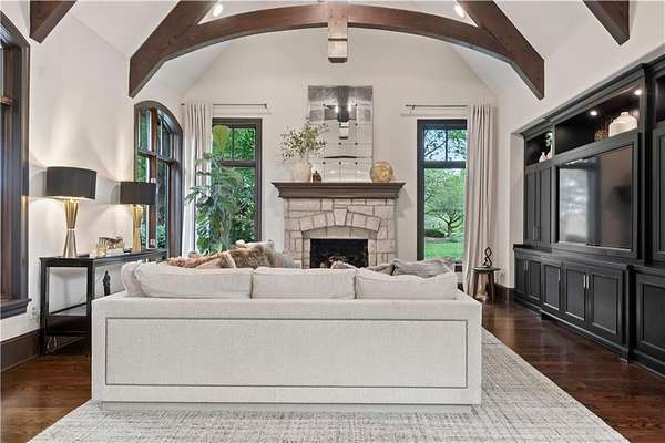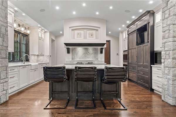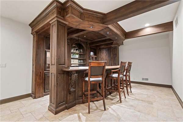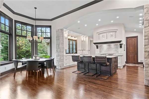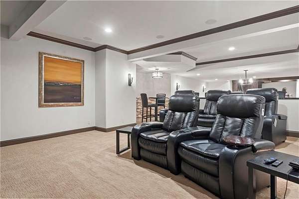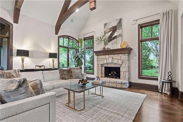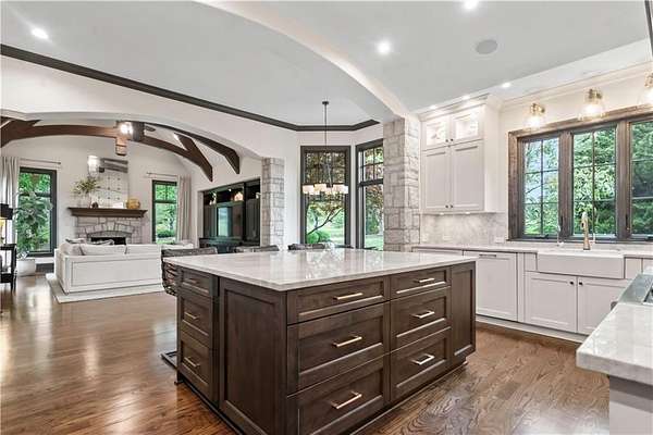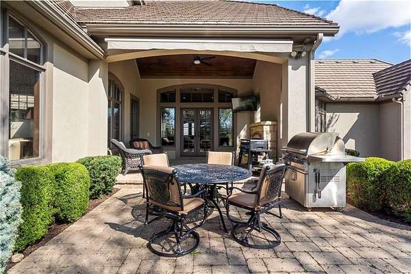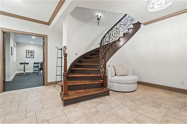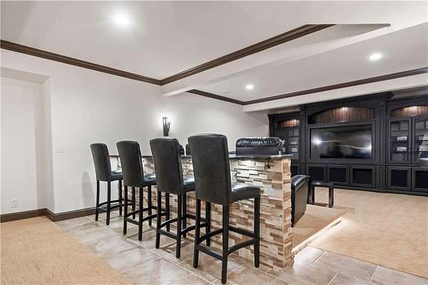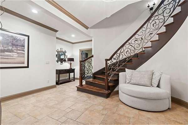 Exquisite 1.5-story home in Mission Farms that blends timeless elegance with modern updates on a beautifully landscaped lot. A dramatic staircase with custom ironwork, solid core doors, and upgraded trim showcase the craftsmanship throughout. The chef's kitchen features quartzite countertops, custom cabinetry, and top-tier appliances, opening to a cozy hearth room. Formal dining and a spacious living room-ideal for a grand piano-flow seamlessly to a covered paver patio for effortless entertaining. The main-level primary suite is a private retreat with a spa-inspired bath and custom walk-in closet. A handsome office with fireplace completes the first floor. Upstairs offers three bedrooms with fresh paint, new carpet, and updated baths, plus a versatile loft. The lower level, finished by Rick Standard, is designed for entertaining with a full bar, media room, wine cellar, workout room, and fifth bedroom. Multiple outdoor living areas, a sport court, and large backyard provide space to relax, gather, or play. This stately estate offers luxury, comfort, and thoughtful design in one of the area's most desirable neighborhoods.