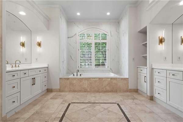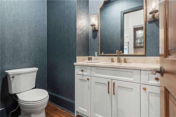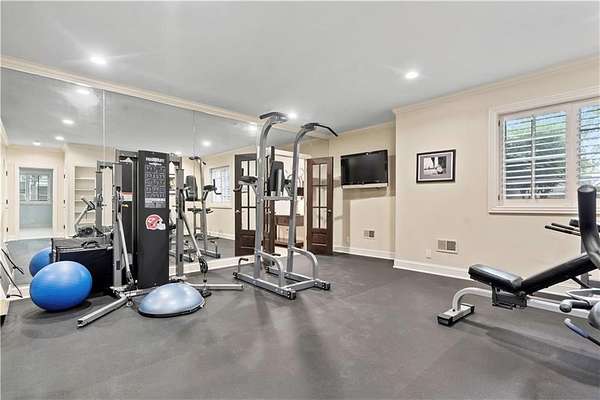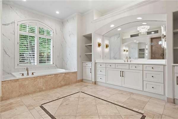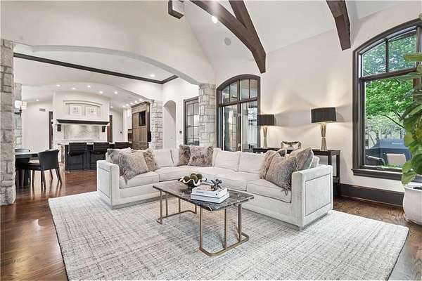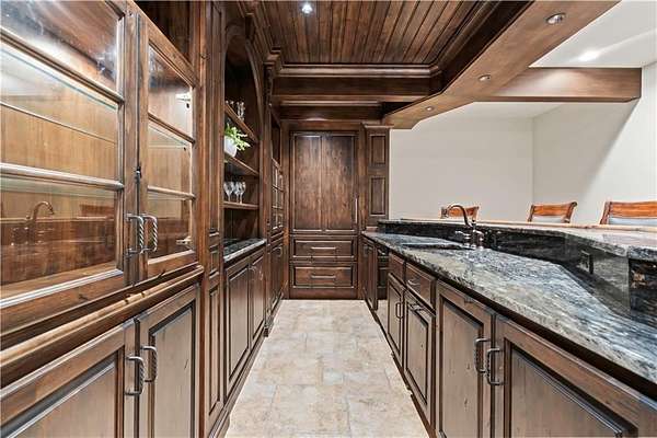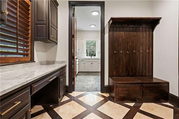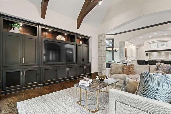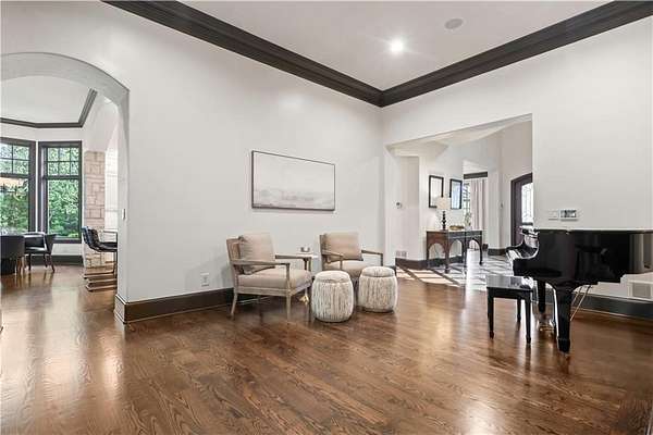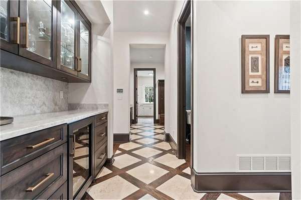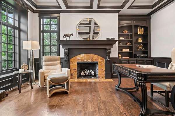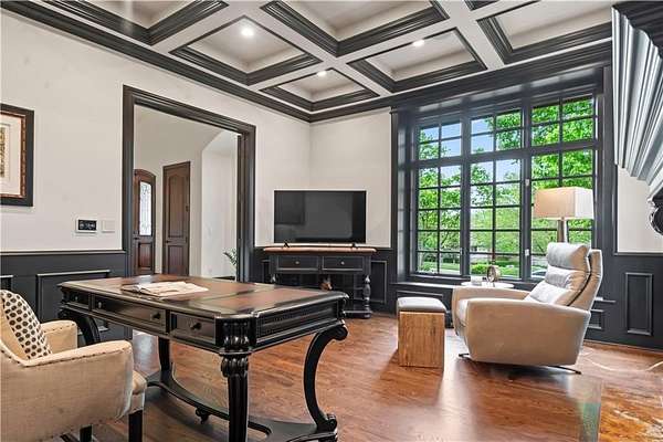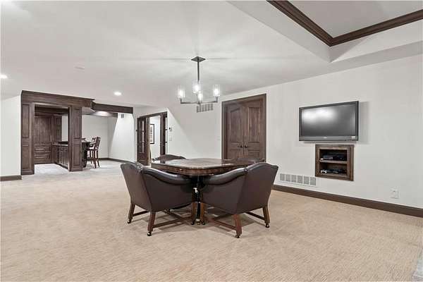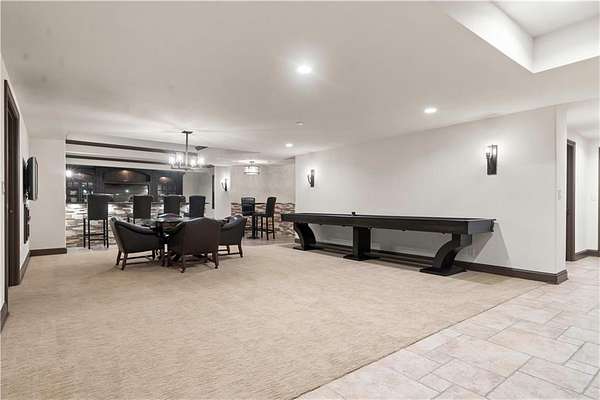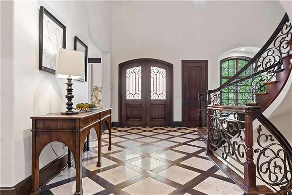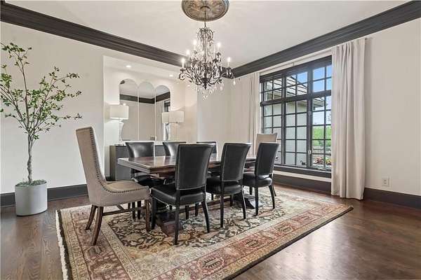 Exquisite 1.5-story home in Mission Farms that blends timeless elegance with modern updates on a beautifully landscaped lot. A dramatic staircase with custom ironwork, solid core doors, and upgraded trim showcase the craftsmanship throughout. The chef's kitchen features quartzite countertops, custom cabinetry, and top-tier appliances, opening to a cozy hearth room. Formal dining and a spacious living room-ideal for a grand piano-flow seamlessly to a covered paver patio for effortless entertaining. The main-level primary suite is a private retreat with a spa-inspired bath and custom walk-in closet. A handsome office with fireplace completes the first floor. Upstairs offers three bedrooms with fresh paint, new carpet, and updated baths, plus a versatile loft. The lower level, finished by Rick Standard, is designed for entertaining with a full bar, media room, wine cellar, workout room, and fifth bedroom. Multiple outdoor living areas, a sport court, and large backyard provide space to relax, gather, or play. This stately estate offers luxury, comfort, and thoughtful design in one of the area's most desirable neighborhoods.