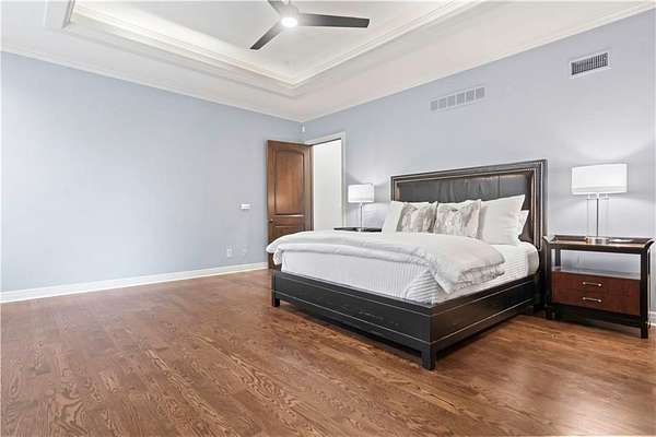 - Ceiling Fan(s), Custom Cabinets, Kitchen Island, Painted Cabinets, Pantry, Vaulted Ceiling(s), Walk-In Closet(s)